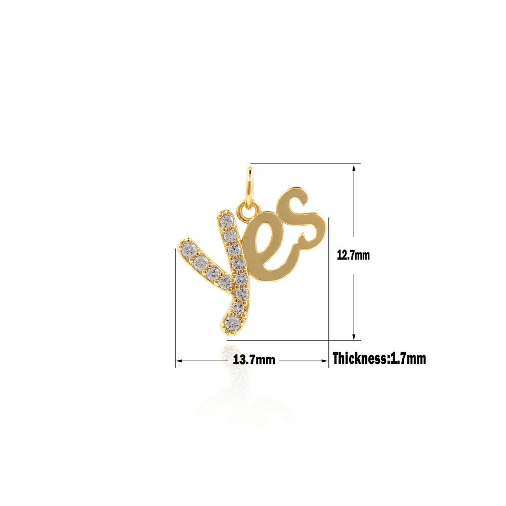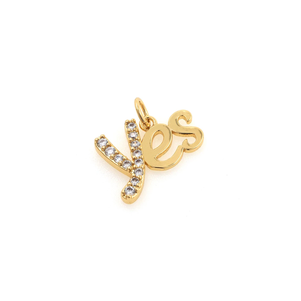 Micropav кубический цирконий да ожерелье, Золотая Модель, текст очарования, DIY Ювелирные компоненты 13,7 12,7 1,7 мм