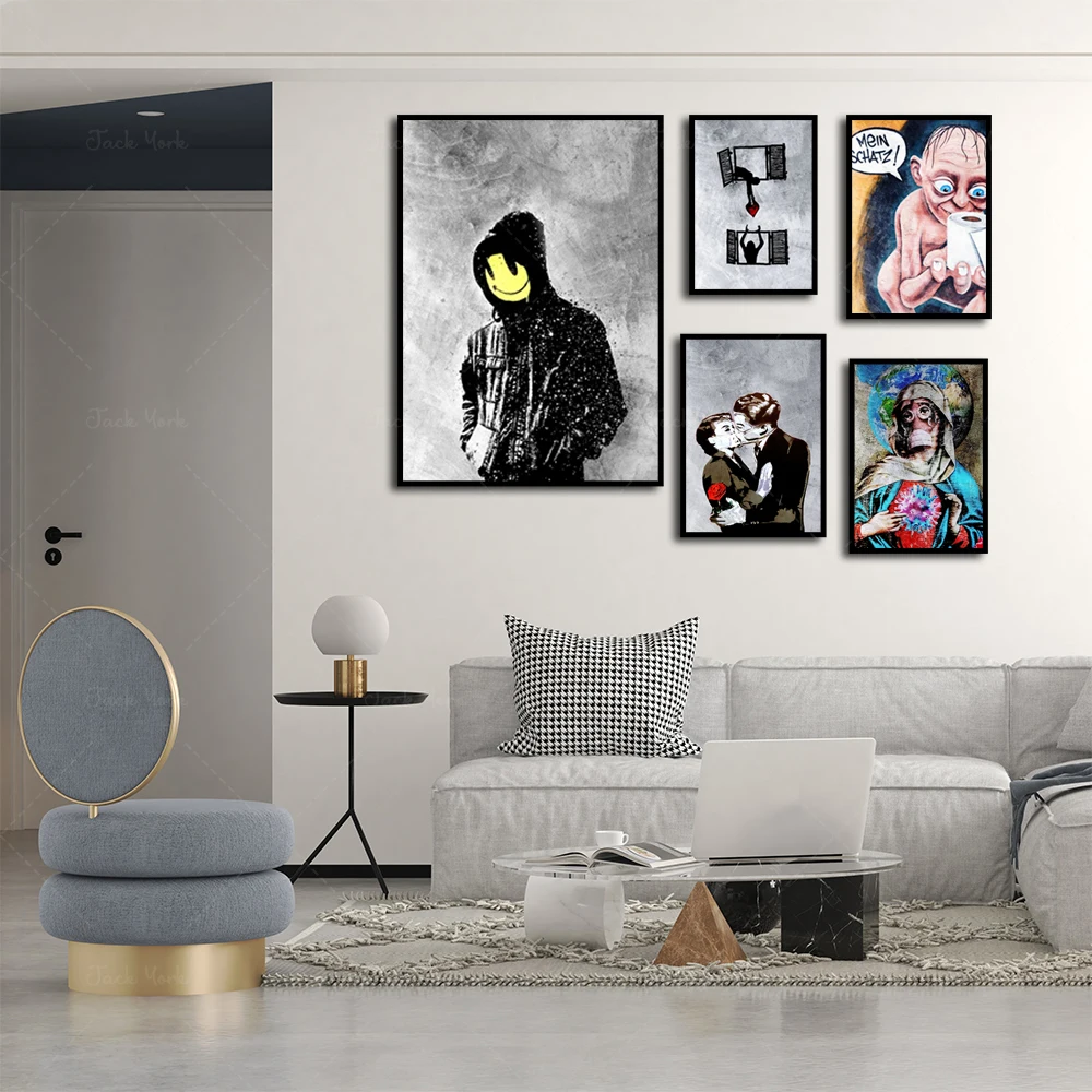 Граффити Бэнкси, фотография черно-белой абстрактной стены для скандинавского домашнего декора
