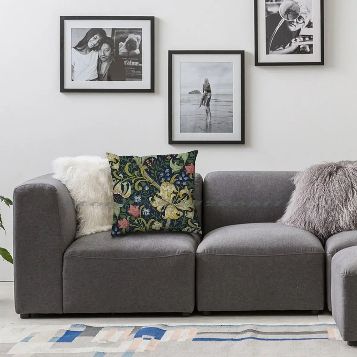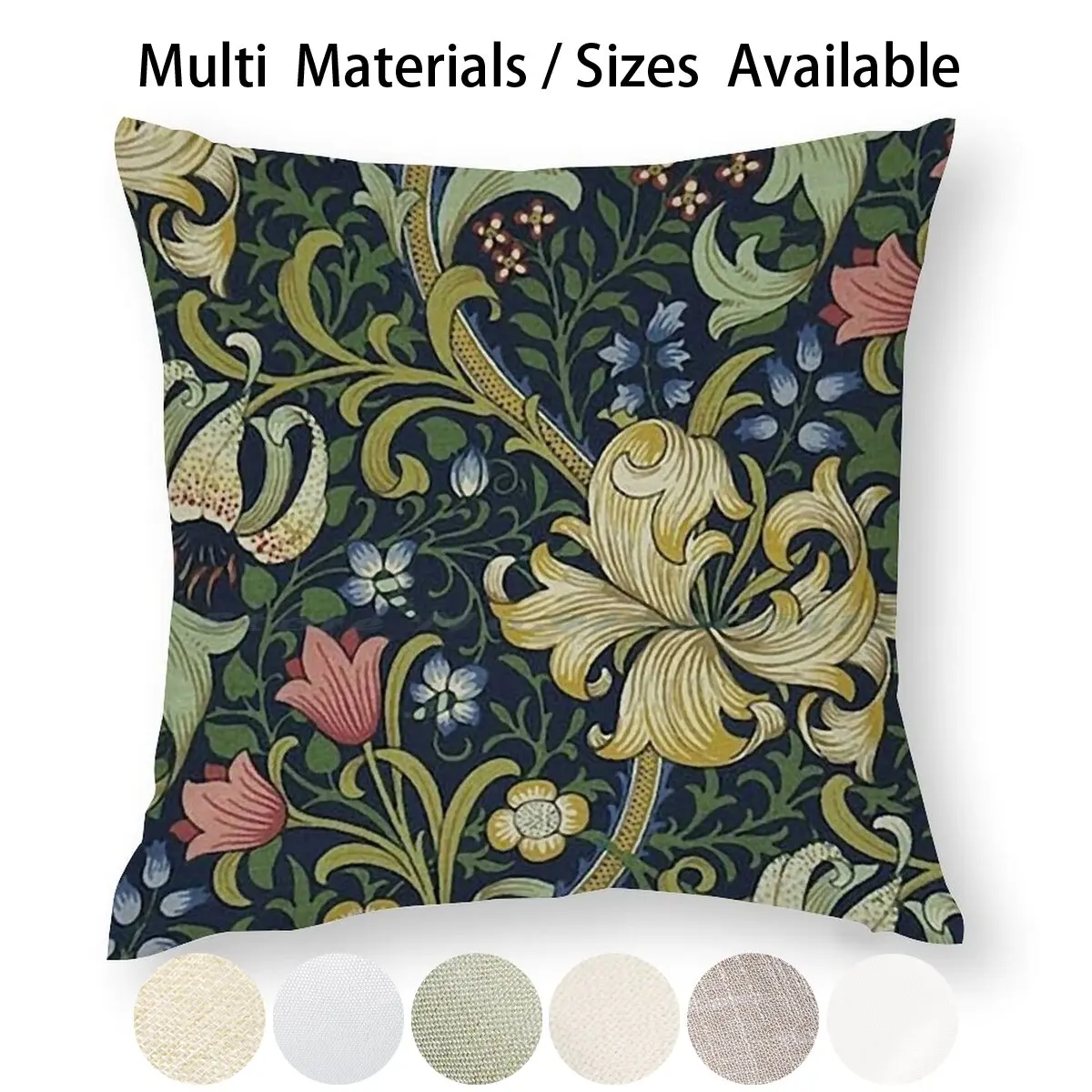 Чехол на подушку с изображением Вильяма Морриса золотых лилий, наволочка из хлопка и льна, Вильям Моррису, Золотая Лилия, золотой цветок