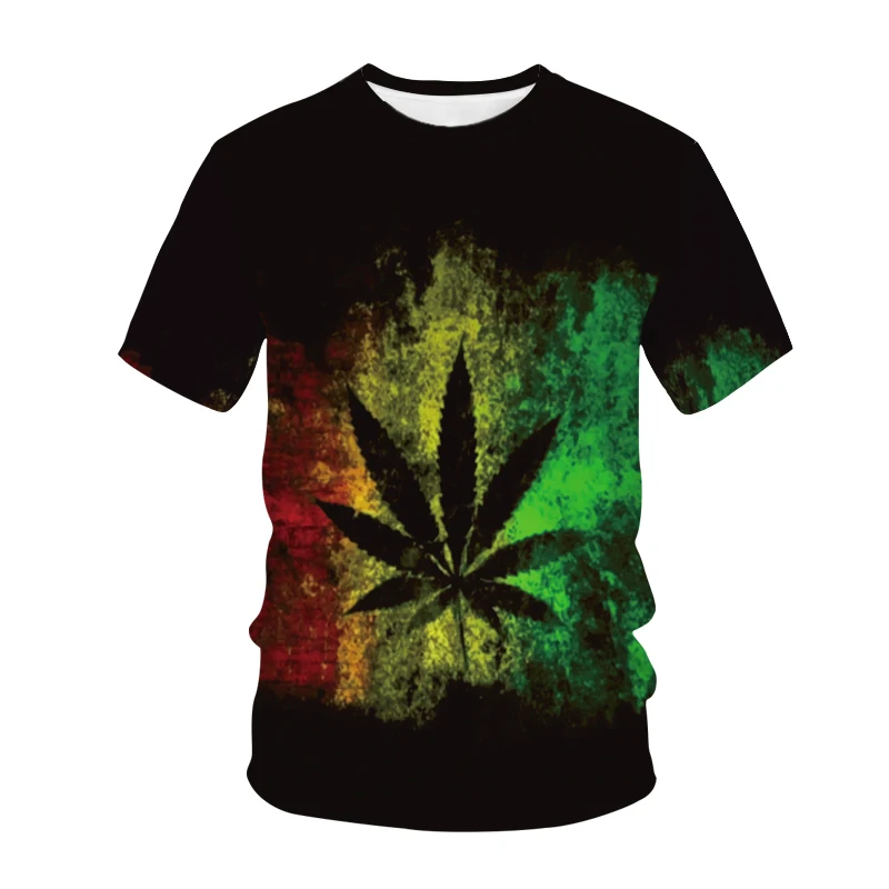 Футболка Мужскаяженская с принтом зеленых листьев конопли, повседне...
