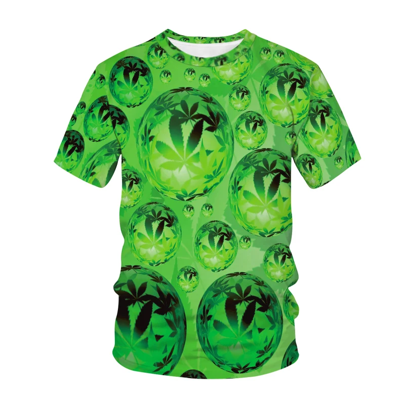 Футболка Joke04 с зелеными листьями конопли, женская футболка с 3d принтом травы в стиле Харадзюку, повседневные летние спортивные топы с коротким рукавом для мальчиков и девочек в стиле хип-хоп