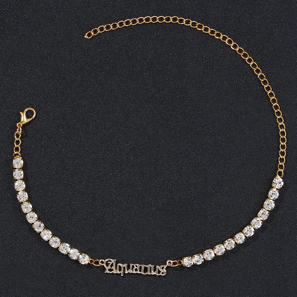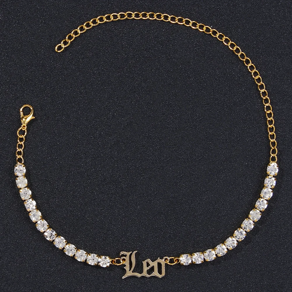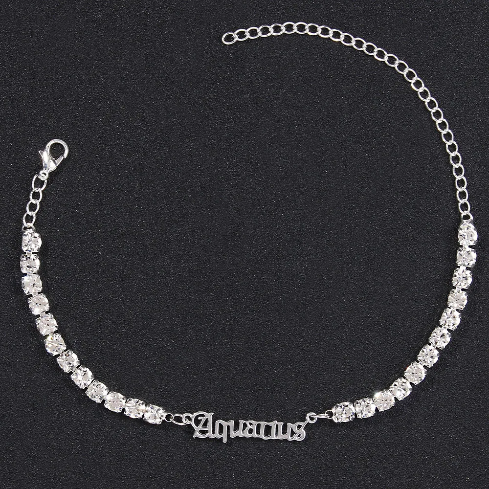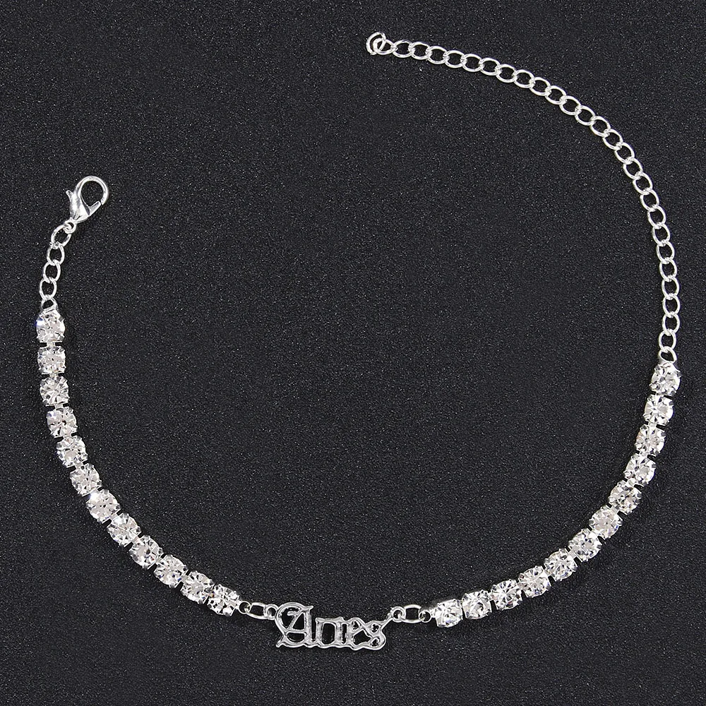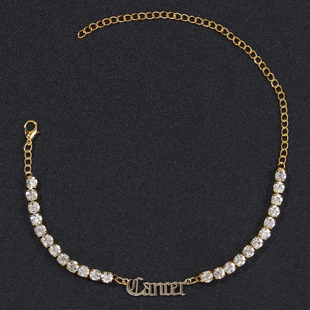Браслеты на ногу 12 созвездий для женщин, ювелирные украшения в стиле бохо для Девы, Лев, рака, браслеты на щиколотку с кристаллами циркония, Пляжная цепочка для ног