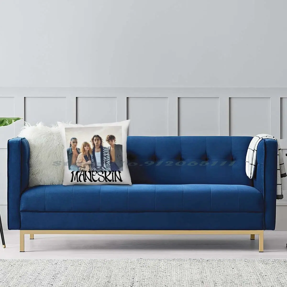 Наволочка для подушки Maneskin, наволочка из хлопка и льна, наволочка для подушки Glamrock, Digitalart, Ретро волна, эстетика, Citypop Colorpop Popcolor
