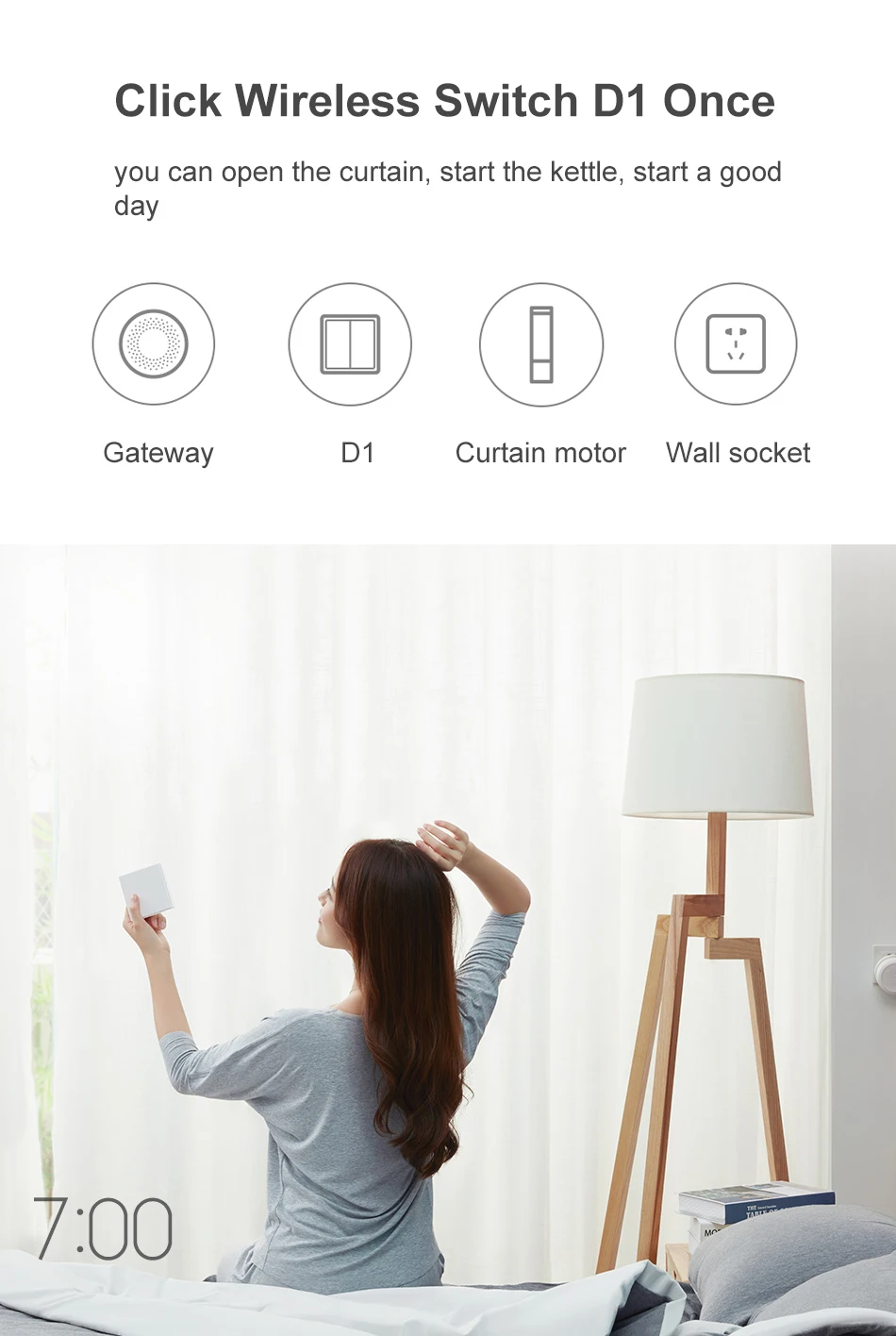 Из-за различных внутренних условий Расстояние связи между беспроводным переключателем D1 (настенный) и шлюзом отличается. Как правило, расстояние связи между ними составляет менее 20 метров, и эффект лучше, когда Середина меньше двух стен