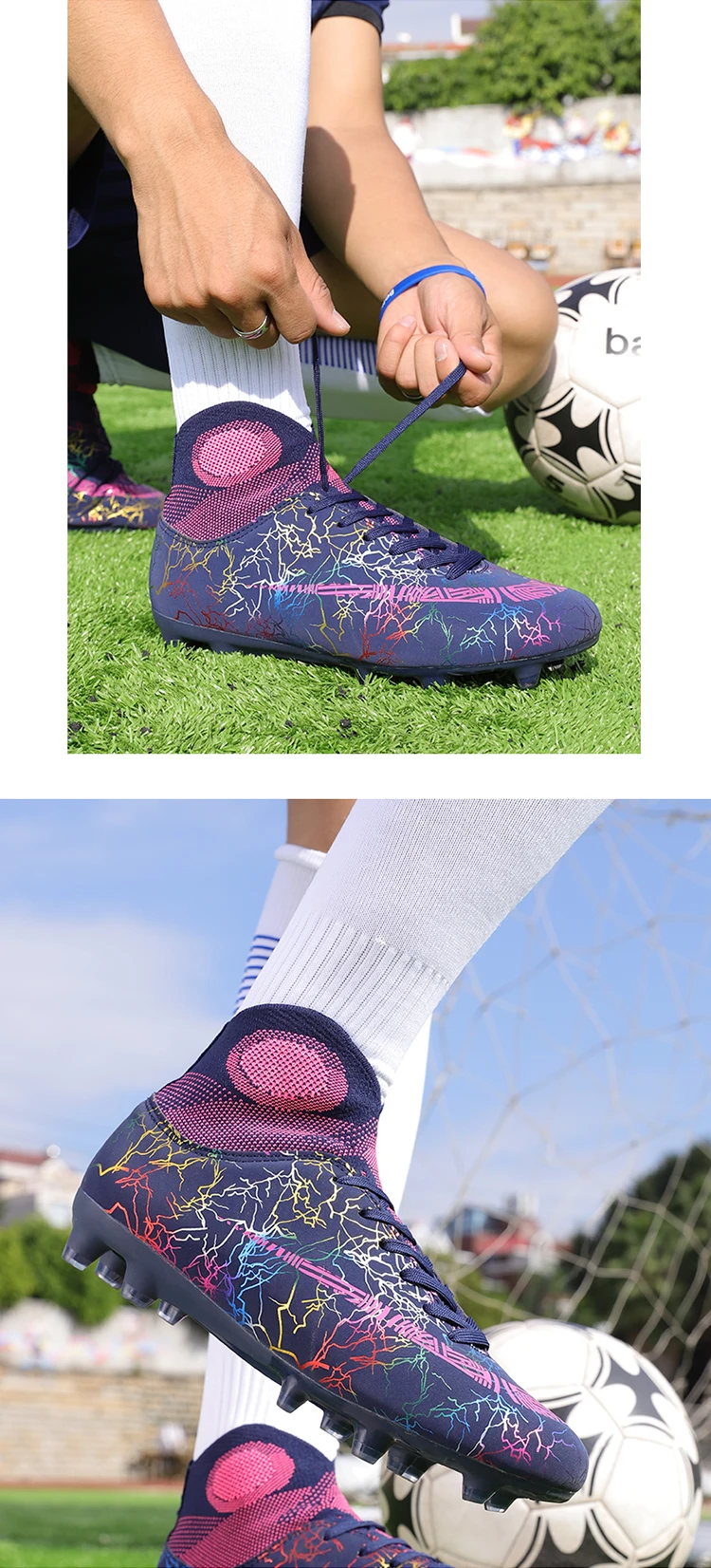 Мужские футбольные ботинки, детские футбольные бутсы, Высокие Топы, Длинные шипы, уличная мужская тренировочная обувь, кроссовки, Уличная обувь для газона