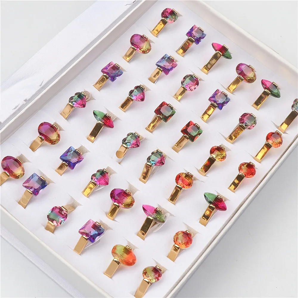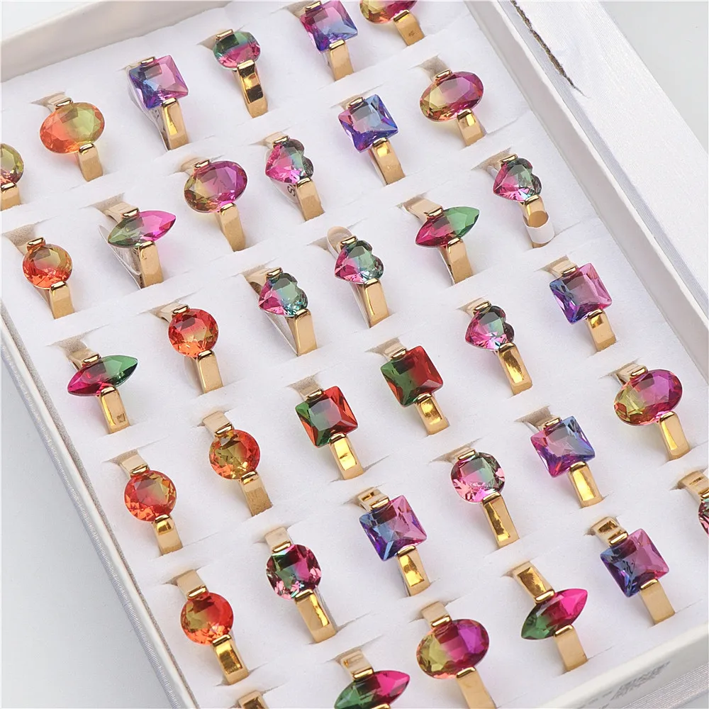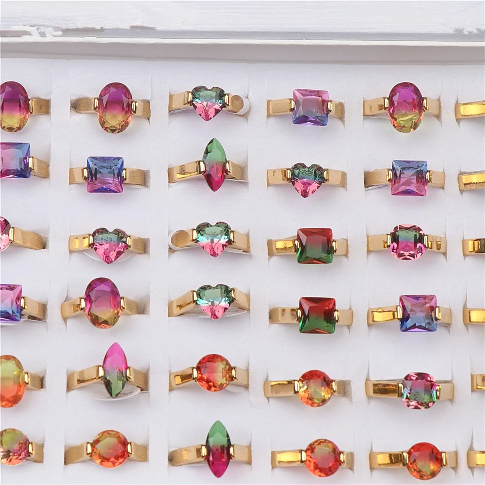 20 шт.лот модные кольца из нержавеющей стали с цветным Цирконом золотого цвета Love для женщин Смешанные стильные свадебные украшения подарок вечерние оптовая продажа