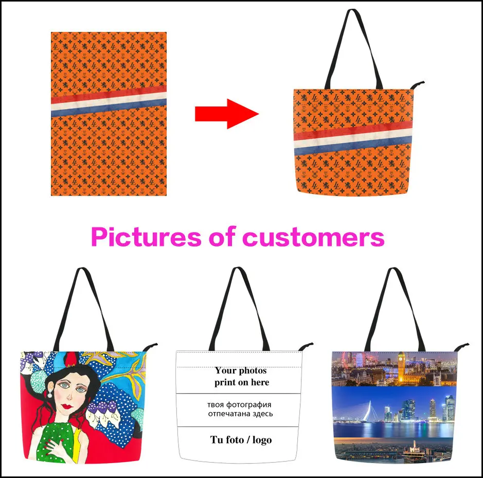 Женская модная сумка для покупок с логотипом на заказ, пустая Сублимация сумки с принтом, сумки для передачи тепла, многоразовые сумка для продуктов