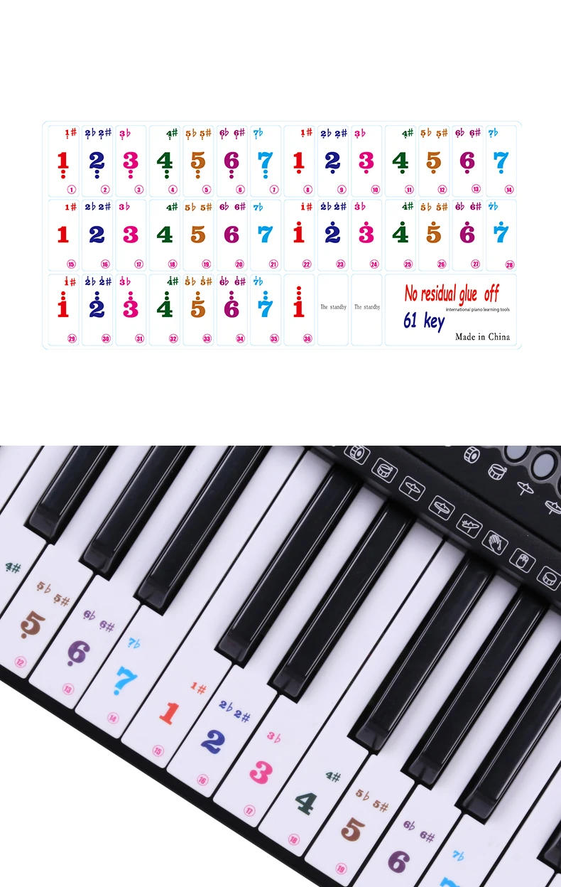 Наклейки на клавиатуру пианино, 374961 клавиши, специальная электронная наклейка на клавиатуру пианино, ручная наклейка на клавиатуру пианино, стикеры для нотаций и персонажей, пленка
