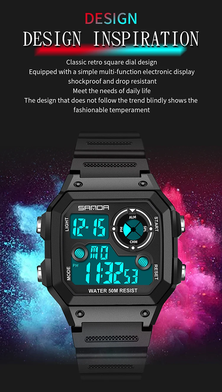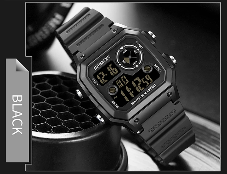 Часы наручные SANDA Мужские Цифровые, водонепроницаемые до 50 м, в ...