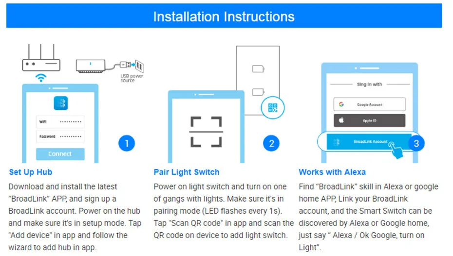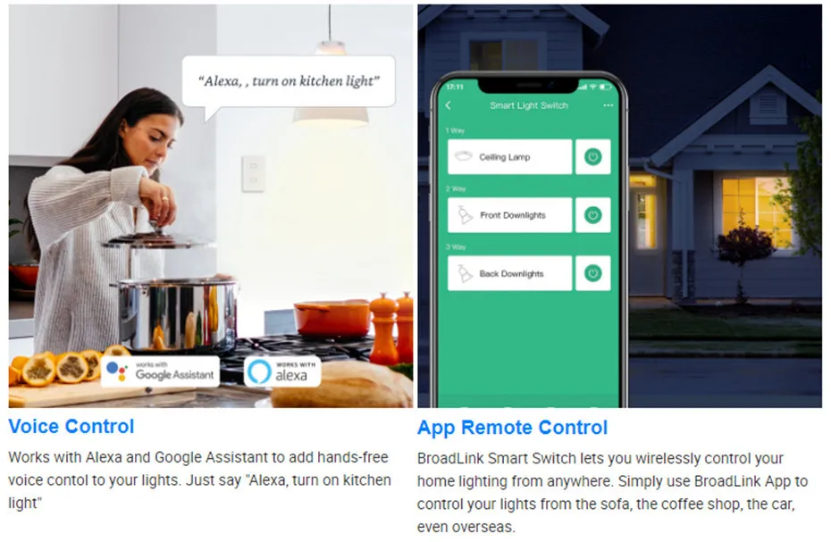 Пульт дистанционного светильник BroadLink TC3, сенсорный выключатель, США, 1, 2, 3, голосовой помощник Alexa, Google Home