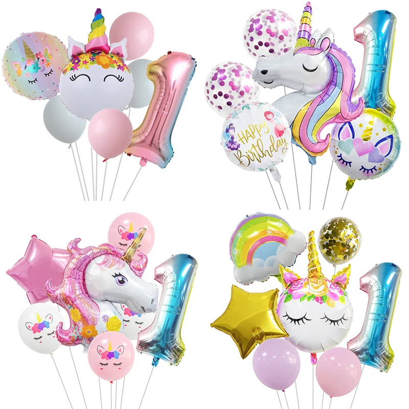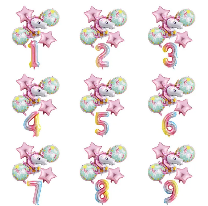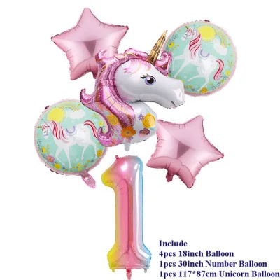 Радужный Единорог воздушный шар с цифрой фольга Globos 1 2 3 4 лет вечерние украшения для дня рождения Детские вечерние шары с единорогом