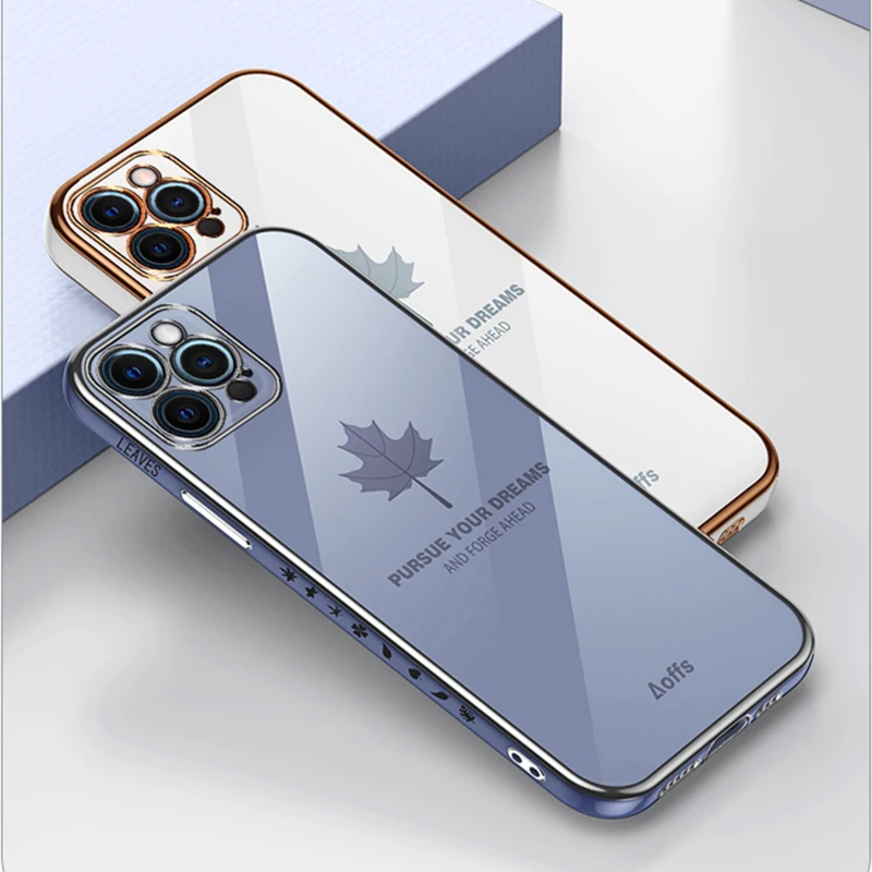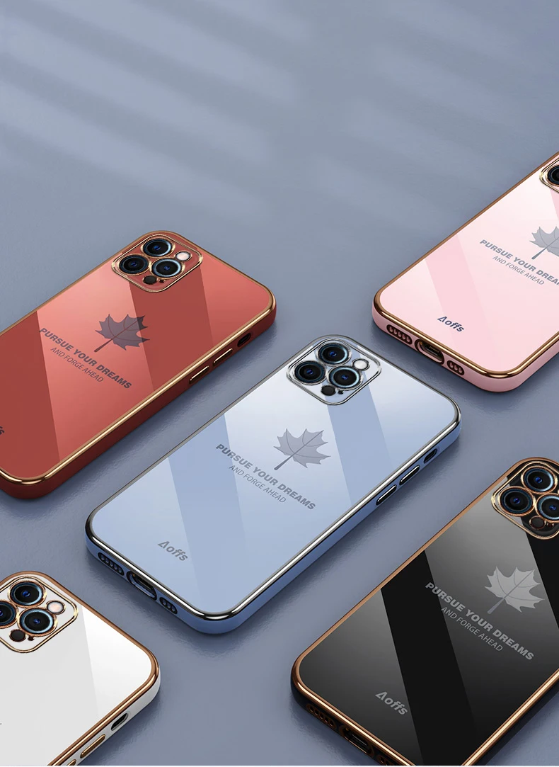 Позолоченный чехол Boucho с Кленовым листом для телефона iphone 12 Pro MAX 13 Pro 11 Pro MAX XR XS MAX X 7 8 Plus, задняя крышка с гальваническим покрытием
