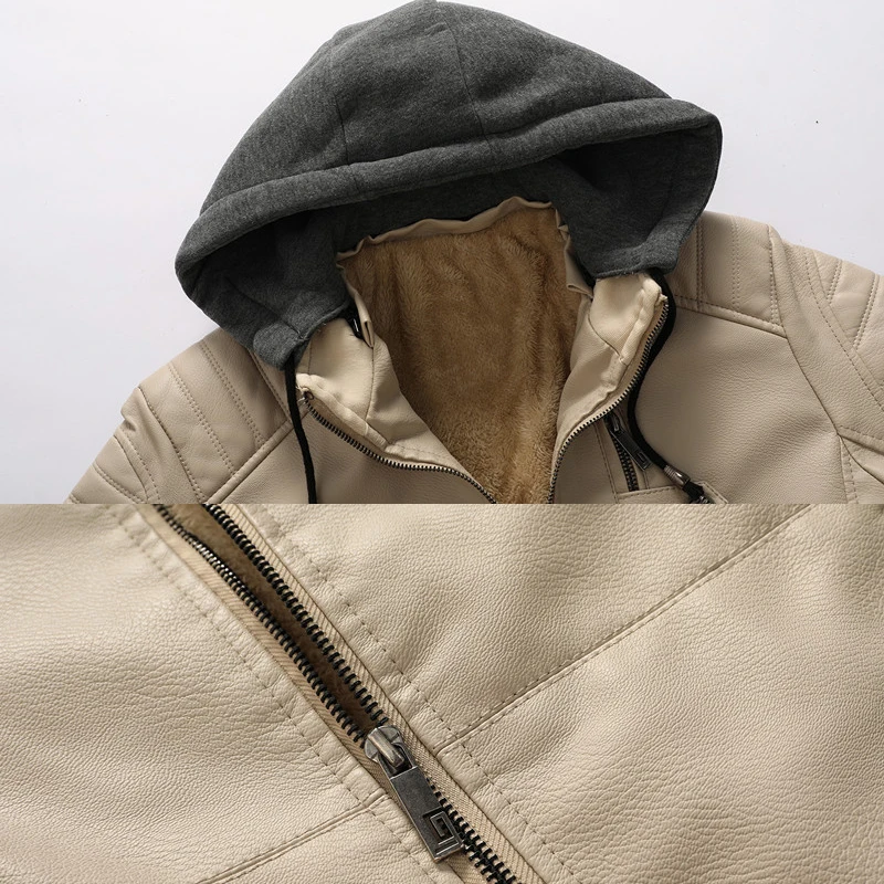 Мужская куртка из ПУ кожи, с флисовой подкладкой и капюшоном