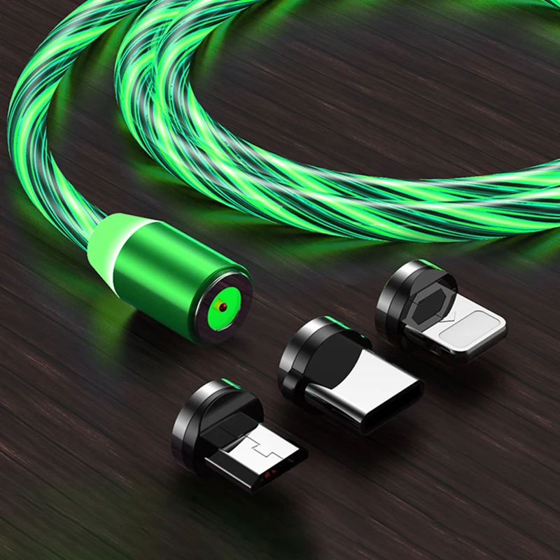 Магнитный зарядный кабель USB Type-C кабель Microusb потоковый свет...