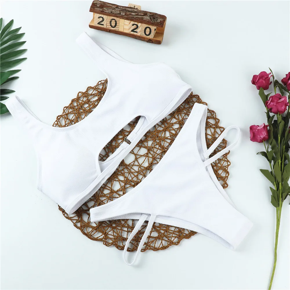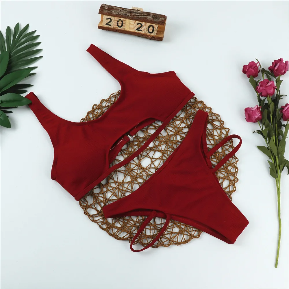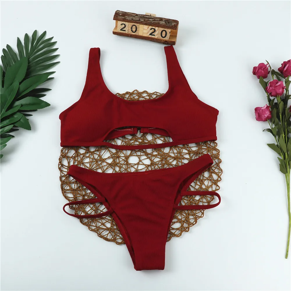 Сексуальный комплект бикини с вырезами, женский купальник с высоким вырезом, однотонный модный купальный костюм, пляжная одежда, монокини, бикини, 2021