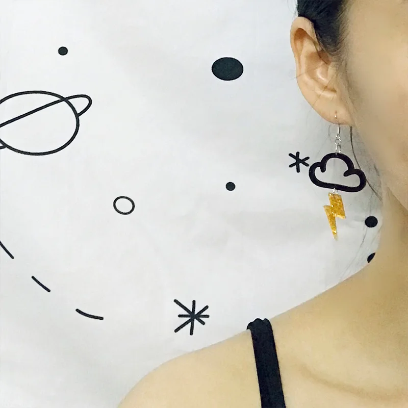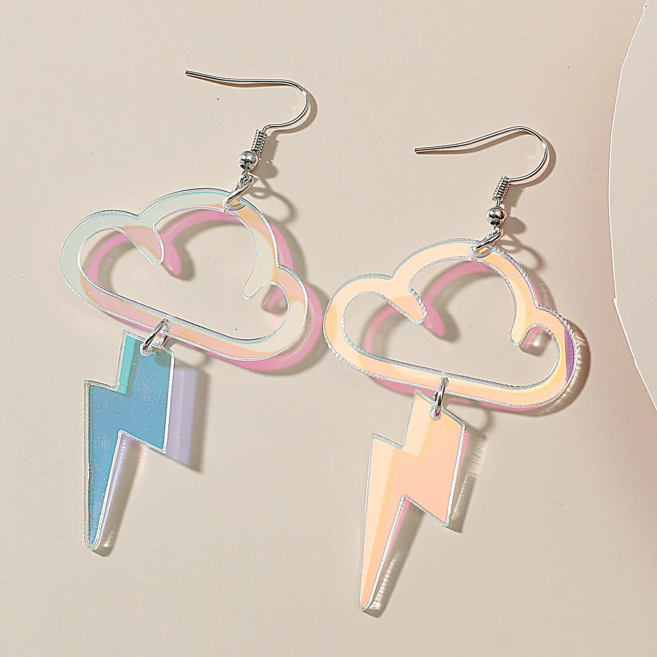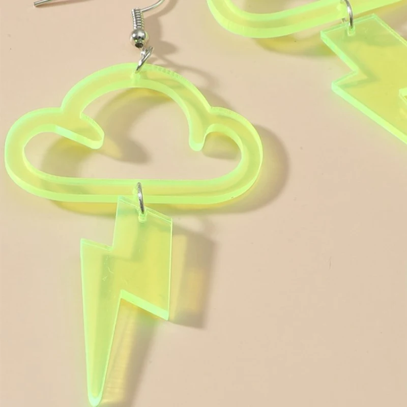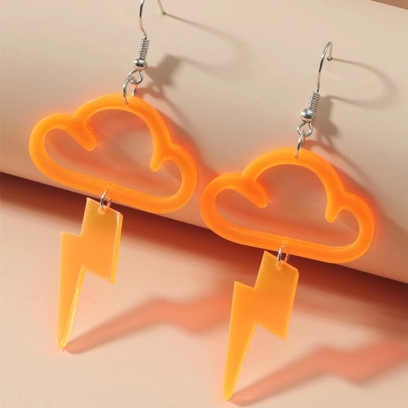 Женские серьги-подвески в стиле панк с флуоресцентными облаками и молнией