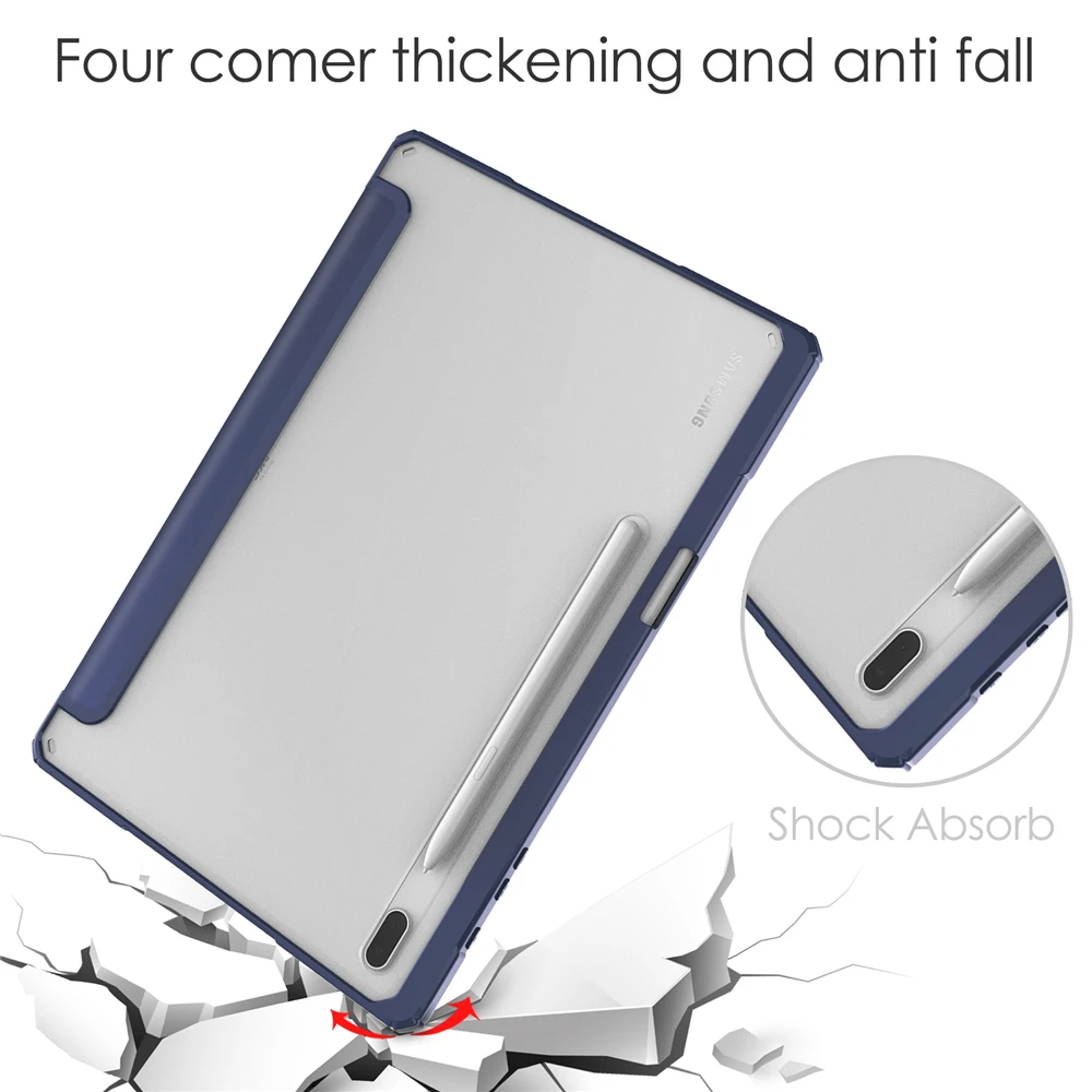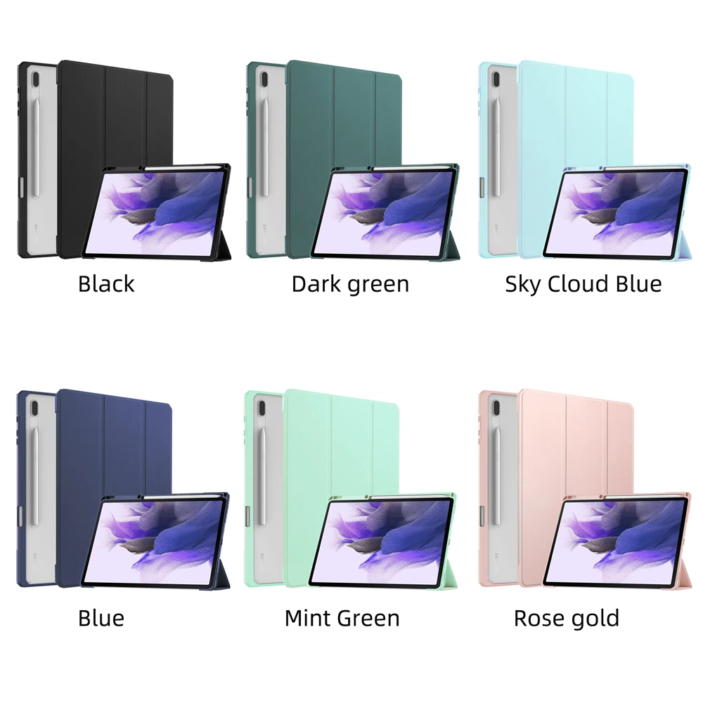 Чехол для Samsung Galaxy TAB S7 Plus S7 FE T736, акриловый + термополиуретановый классический кожаный смарт-чехол с подставкой для ручек