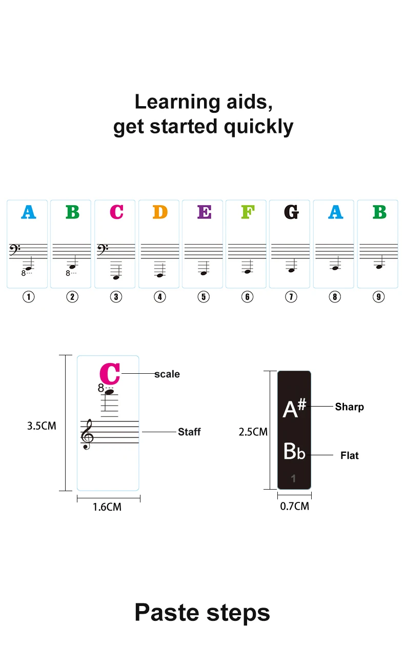 88 клавиш наклейки для пианино, помогите начинающим изучать инструм...