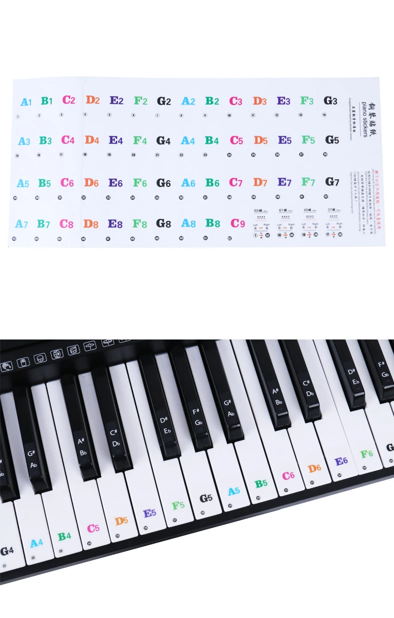 88 клавиш наклейки для пианино, помогите начинающим изучать инструм...