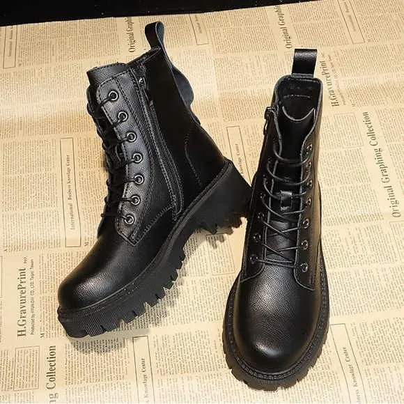 Ботильоны женские на платформе, боевые полусапожки, на шнуровке, с ...