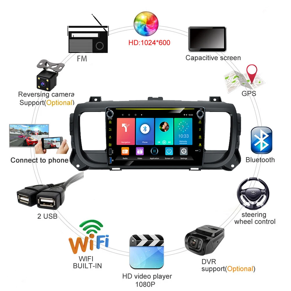 Автомобильная магнитола 2 Din реакosound 8 дюймов Android для Citroen Jumpy 3 SpaceTourer 2016 - 2021 GPS навигация автомобильный мультимедийный плеер