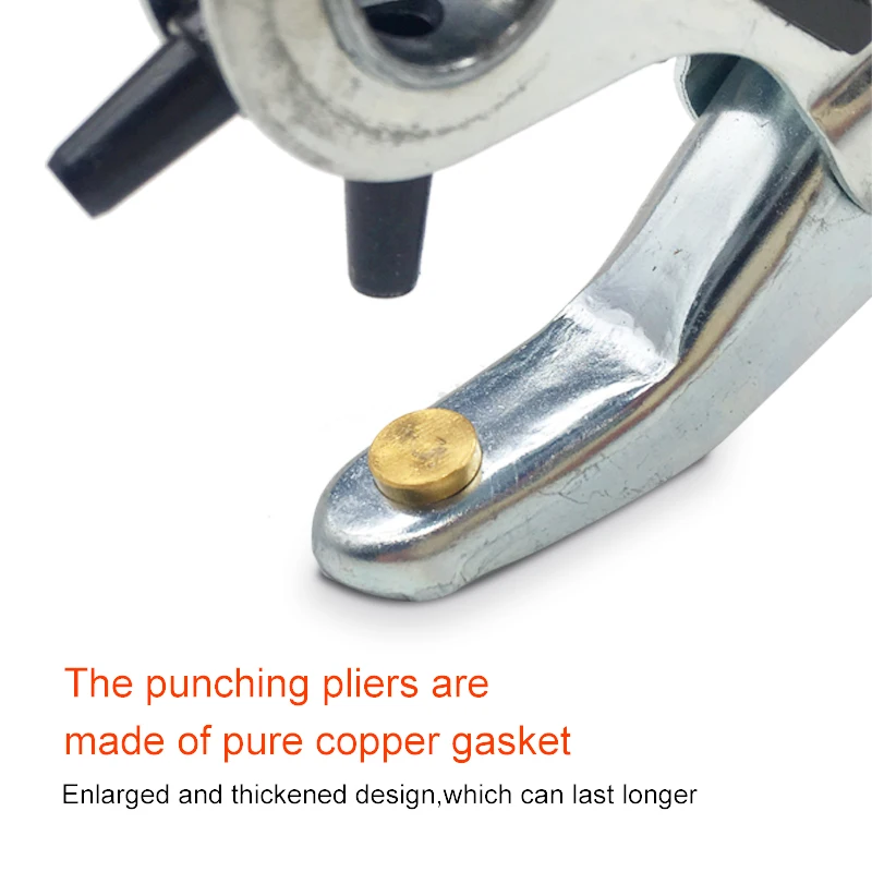 -- 6 Виды отверстий может быть перфорированная: 2 мм, 2,5 мм, 3 мм, 3,5 мм, 4 мм, 4,5 мм.-- Корпус приспособления изготовлен из высококачественной поковки из углеродистой стали, которая является прочной и долговечной.-Есть шесть вращающихся головок разных диаметров.-Пользователи могут регулировать вращающуюся головку против часовой стрелки в соответствии с их потребностями.-- С замком, инструмент легко хранится.-- Головка термообработана, что облегчает пробивку отверстий.-- Инструмент подходит для пробивки отверстий в бумажных картах, коже, дырочках или ремнях для часов.