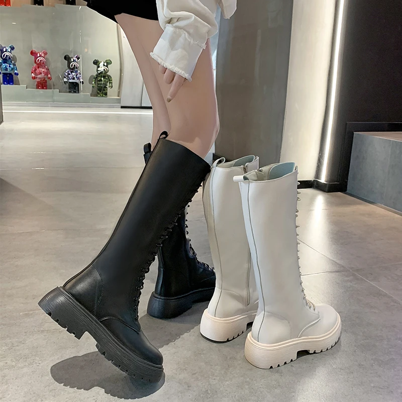 Женские ботинки, Осень-зима 2021, женские высокие ботинки с круглым носком, резиновые ботинки на платформе, женские ботинки, черные Botas Mujer