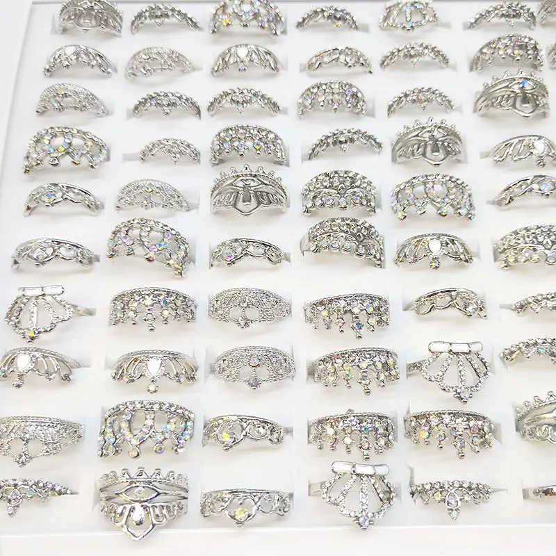50 шт./лот Модные кольца с коронойМатериал: сплав + позолотаРазмер: от 16 мм до 19 мм Размер США от 6 до 9Количество: 50 шт./лотСтиль: смешанный стиль, Случайная ДоставкаПол: женщинПовод: вечерние, повседневные, подарок, свадьба, помолвкаУпаковка: Opp мешок, коробка не включает
