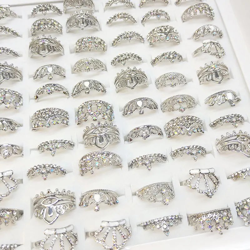 50 шт.лот Модные металлические кольца в виде короны Серебряного и золотого цвета для женщин Смешанные стильные свадебные украшения подарки для вечеринок оптовая продажа