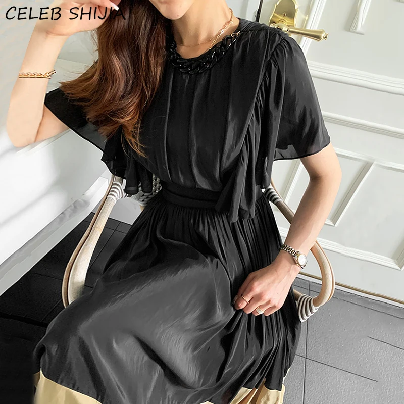 Черные плиссированные платья для женщин, осень 2021, элегантные веч...