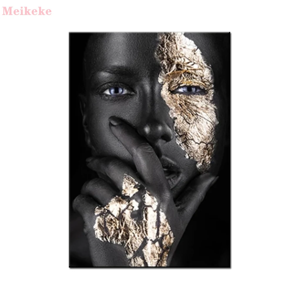 Алмазная живопись 5D сделай сам с полным заполнением, африканская черная Золотая женщина, алмазная вышивка, мозаика, пейзаж, Набор для вышивки крестиком, украшение для дома