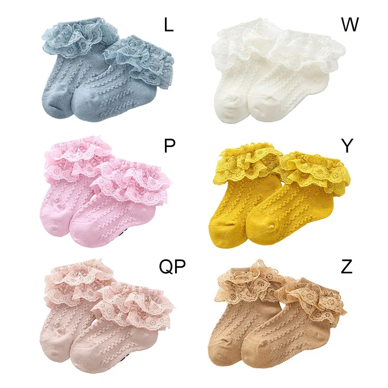 Носки для маленьких девочек; Летние двойные кружевные носки принцессы с оборками; Детские повседневные короткие носки до лодыжки