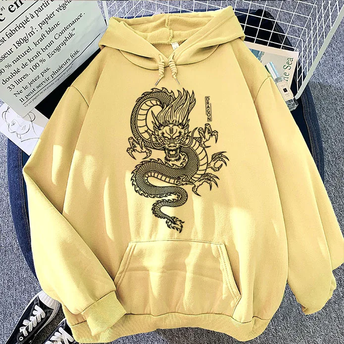 Женская толстовка с принтом дракона в стиле Харадзюку, свободная по...