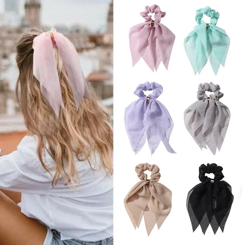 Модный однотонный шифоновый женский шарф для волос резинки для воло...