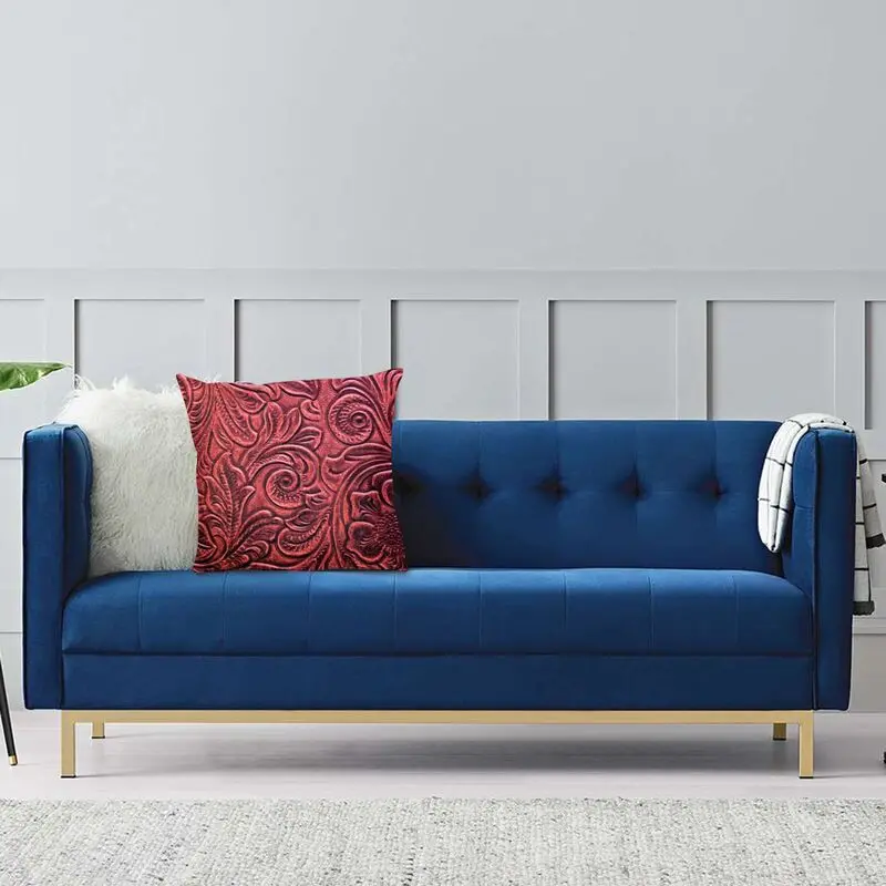 Красная рельефная кожаная квадратная наволочка с цветочным узором, домашняя декоративная наволочка для подушки, наволочка для дивана с принтом