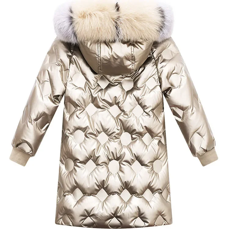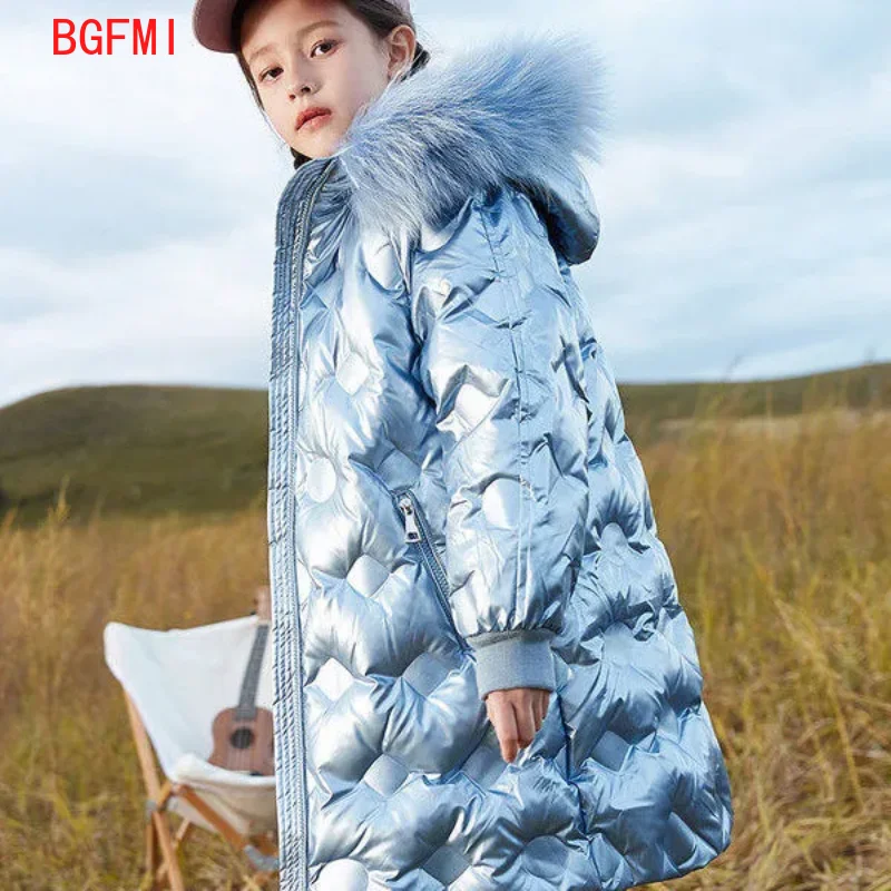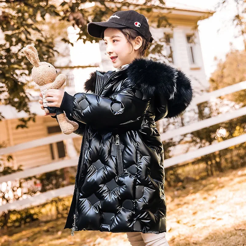 Зимнее пальто для девочек, пуховик, верхняя одежда, детская теплая утепленная верхняя одежда, парка, детская одежда для подростков, Модный Блестящий Комбинезон