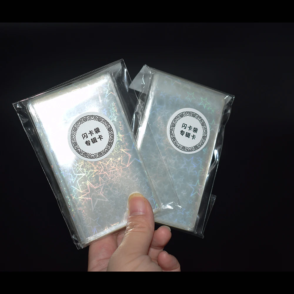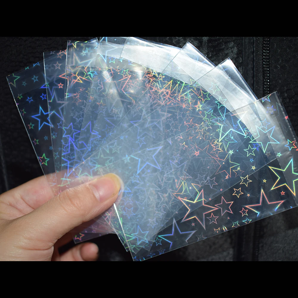 100 шт.лот 57x87 мм Прозрачные лазерные прозрачные чехлы для маленьких карт с большой звездой корейский протектор для фото Idol защитный чехол для торговых карт