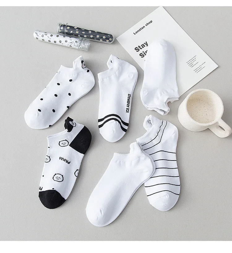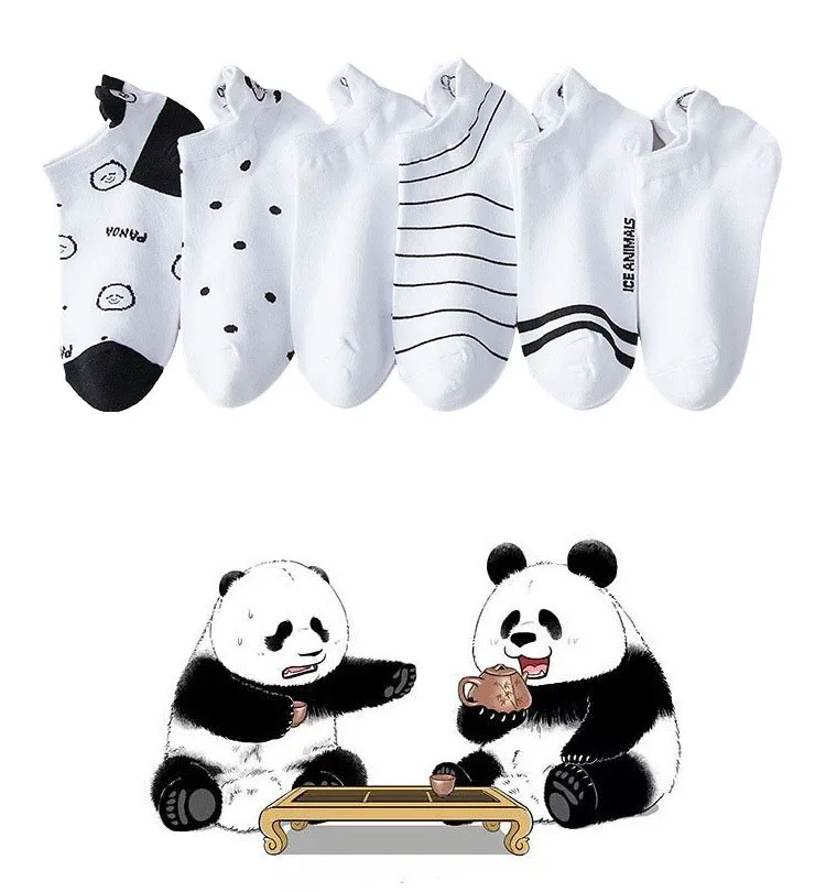 Носки женские с рисунком панды, милые хлопковые Смешные полосатые, с принтом животных, в стиле Харадзюку, белые