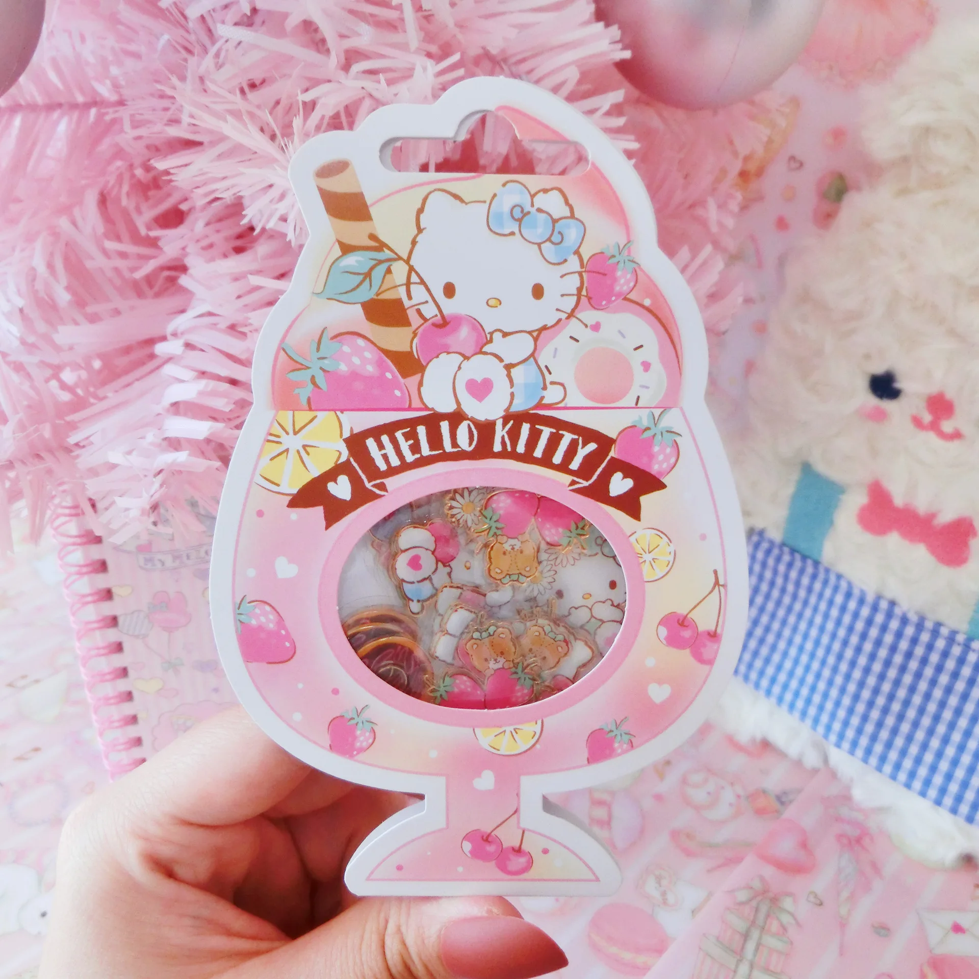 Sanrio, мультяшная наклейка Hello Kitty в форме чашки мороженого, милая наклейка с кристаллами, DIY Наклейка для учетной записи рук, мелодия