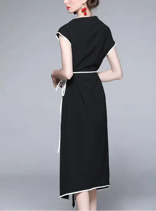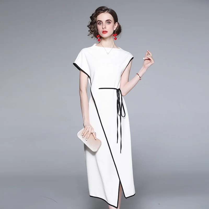 Женское асимметричное платье макси, Элегантное Длинное платье с коротким рукавом реглан и поясом на завязках, платье с запахом, Новинка лета 2021
