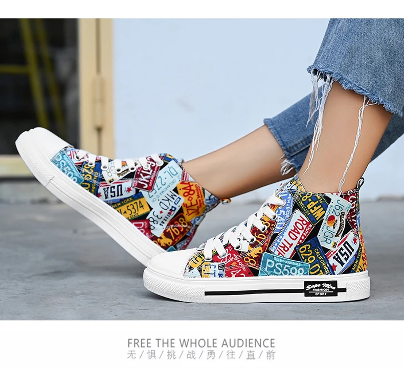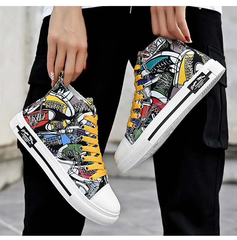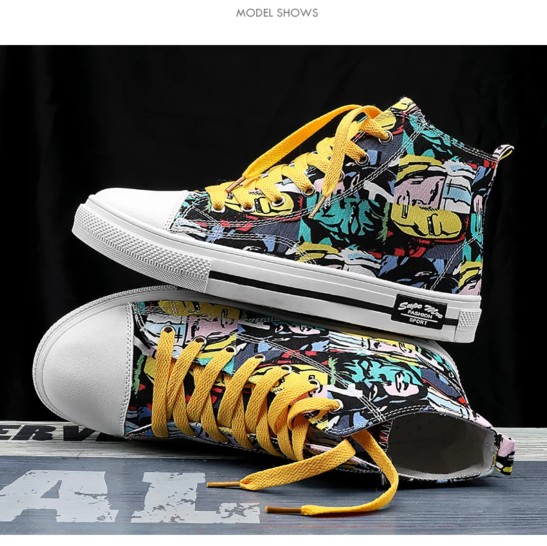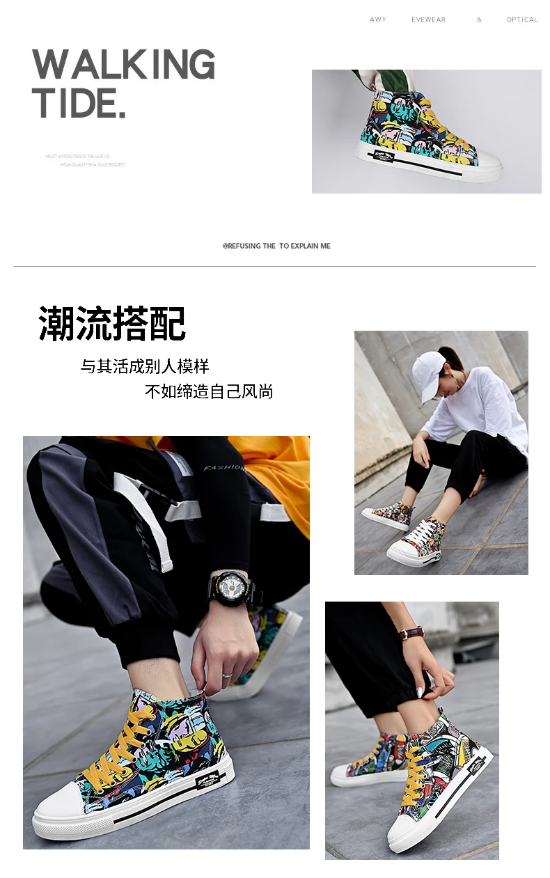 Мужские кроссовки KLYWOO, модная дышащая Вулканизированная обувь, мужские холщовые граффити на платформе, повседневная обувь, уличная одежда унисекс
