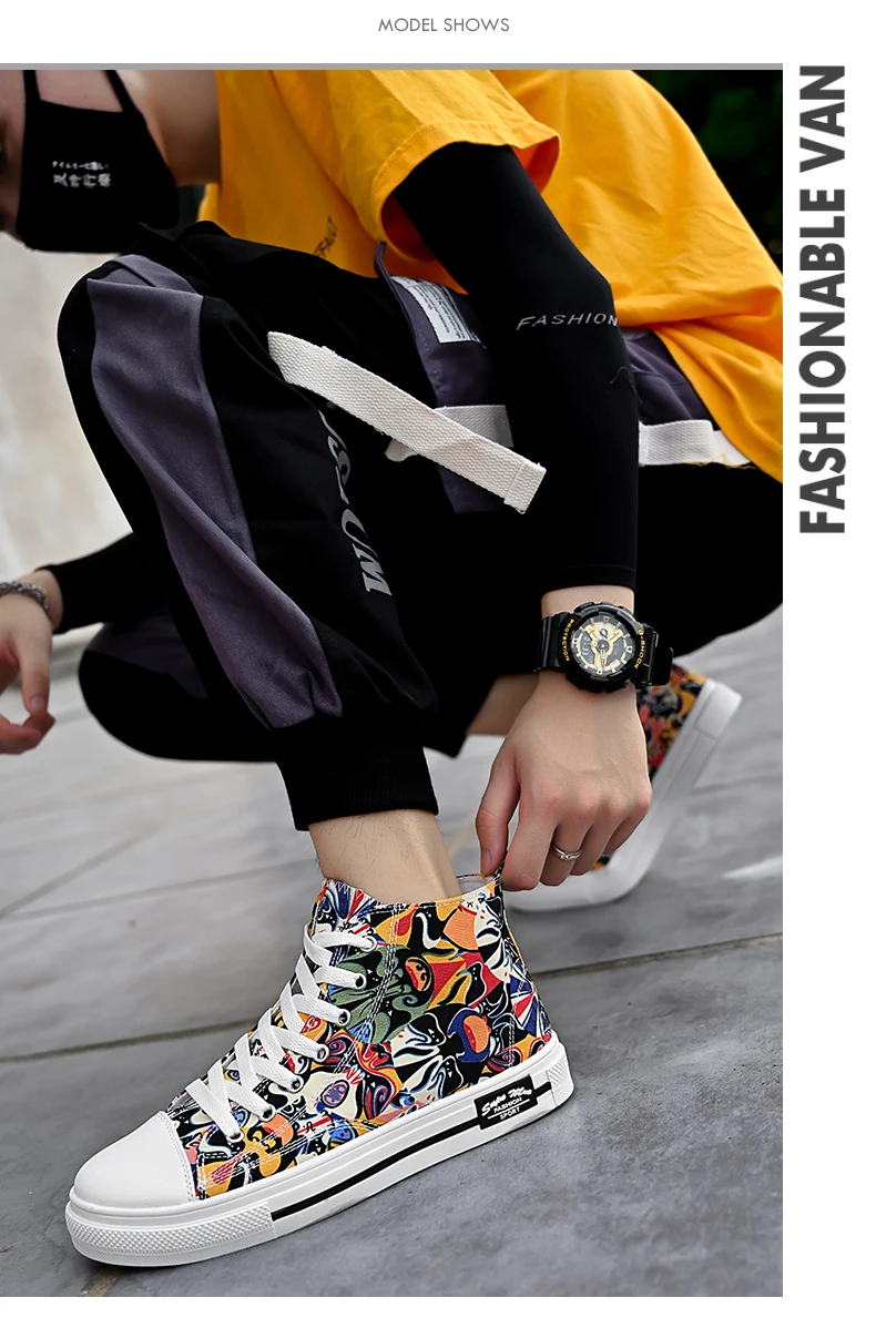 Кеды мужские высокие, повседневная холщовая обувь в стиле хип-хоп, ...