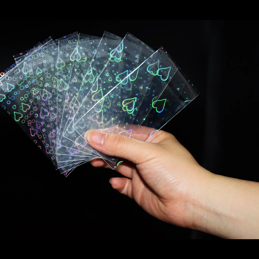100 шт.лот 57x87 мм Прозрачные лазерные прозрачные рукава для маленьких карт с надписью Love YGO Korea Idol Photo Protector Trading Cards Shield Cover