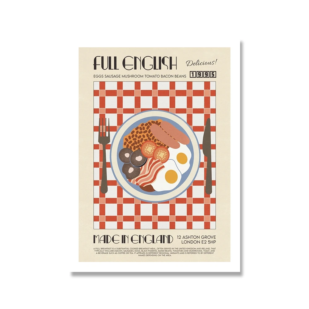 Забавный абстрактный постер на холсте с изображением грибов, морков...
