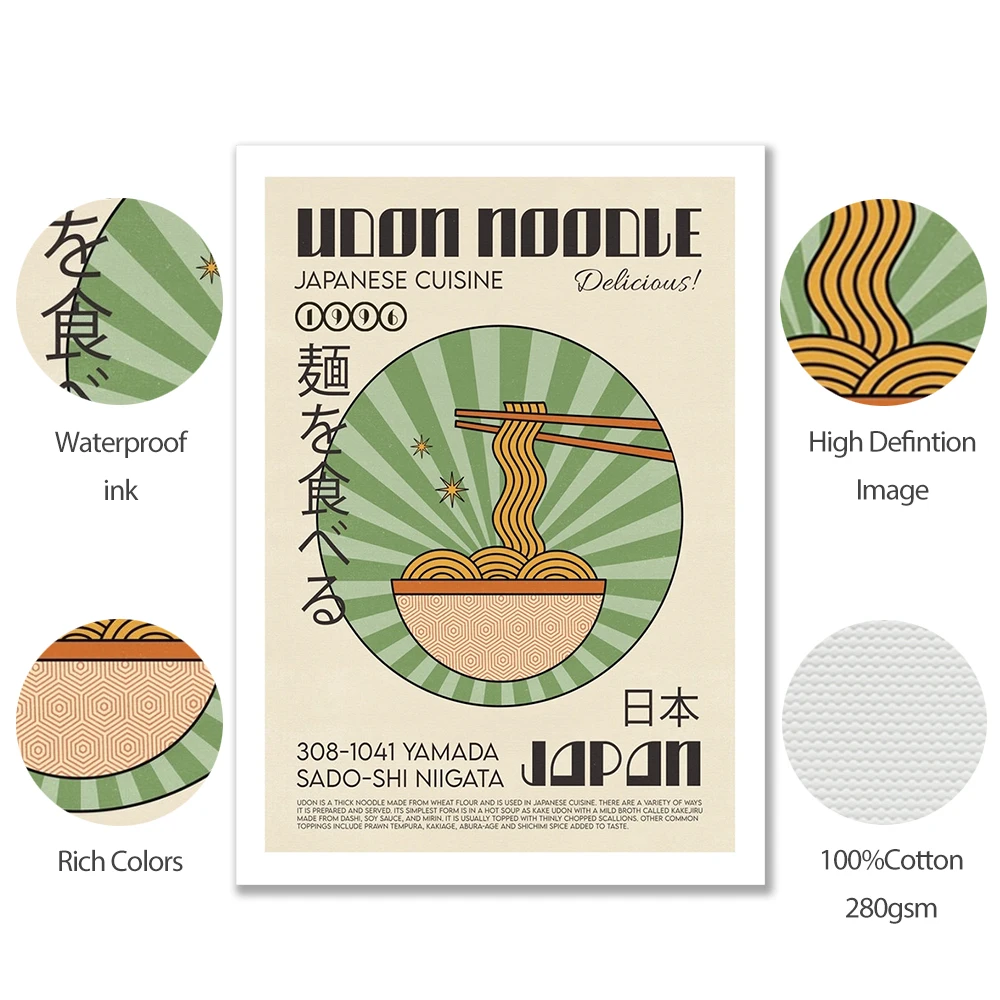 Японская Корейская Настенная картина с изображением еды, мультяшный постер для приготовления лапши, завтрака, кимчи, суши, Картина на холсте, кухонный Декор