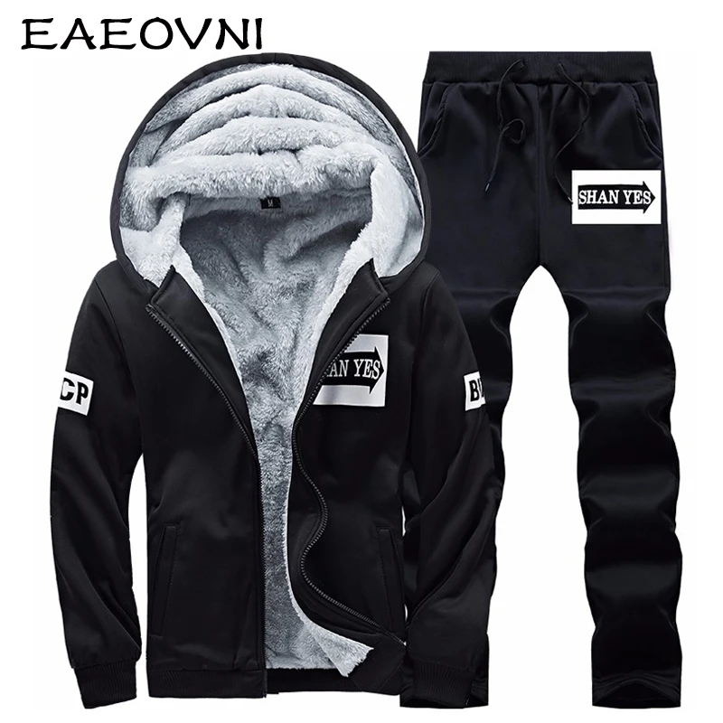 Мужской спортивный костюм EAEOVNI, зимний утепленный комплект из двух предметов, куртка с капюшоном и штаны, толстовка