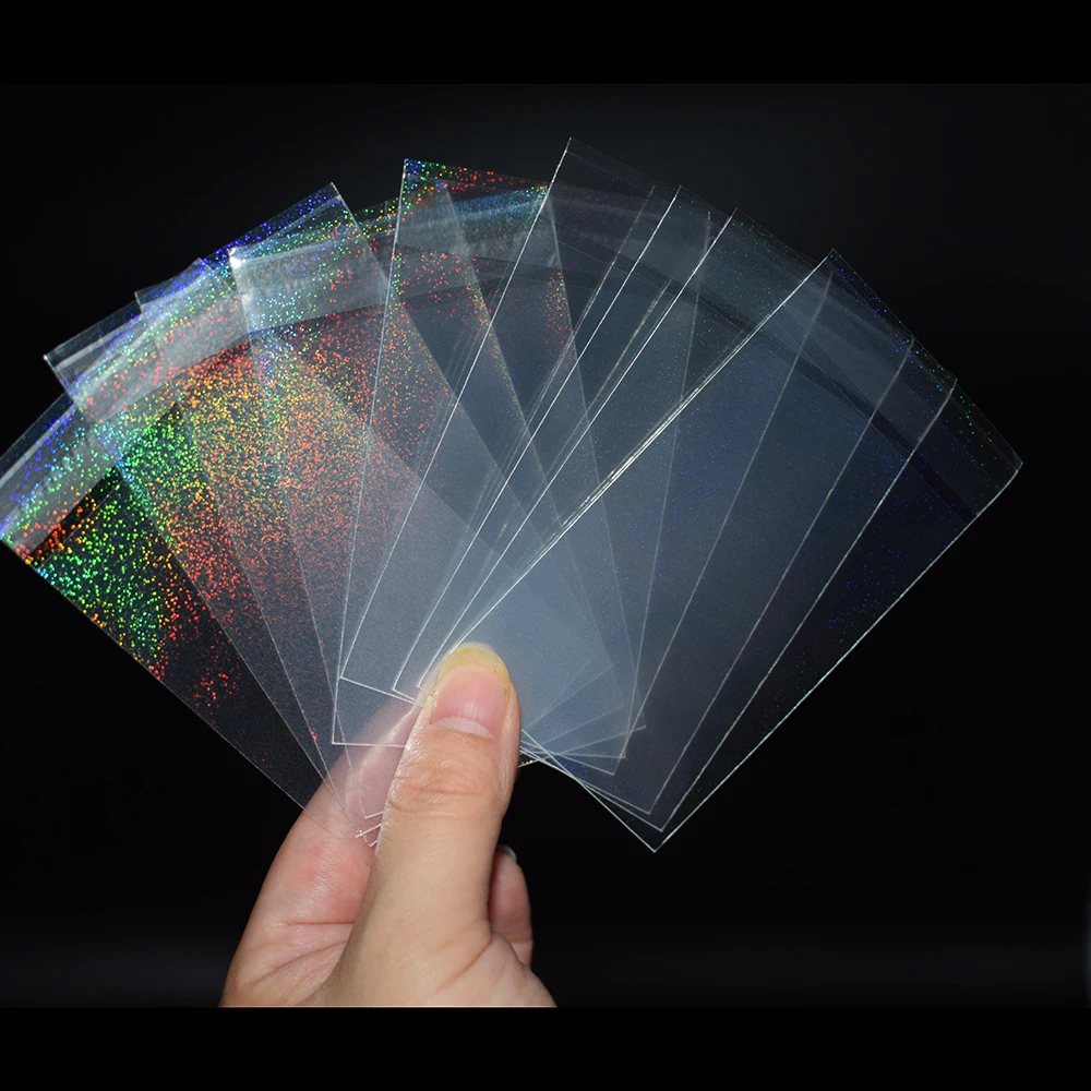 100 шт.лот 57x87 мм блестящие маленькие карты с сыпучим песком Прозрачные лазерные прозрачные рукава Защита для фото Idol торговые карты защитный чехол