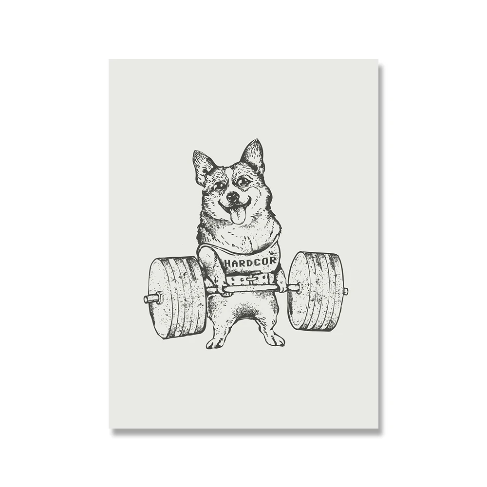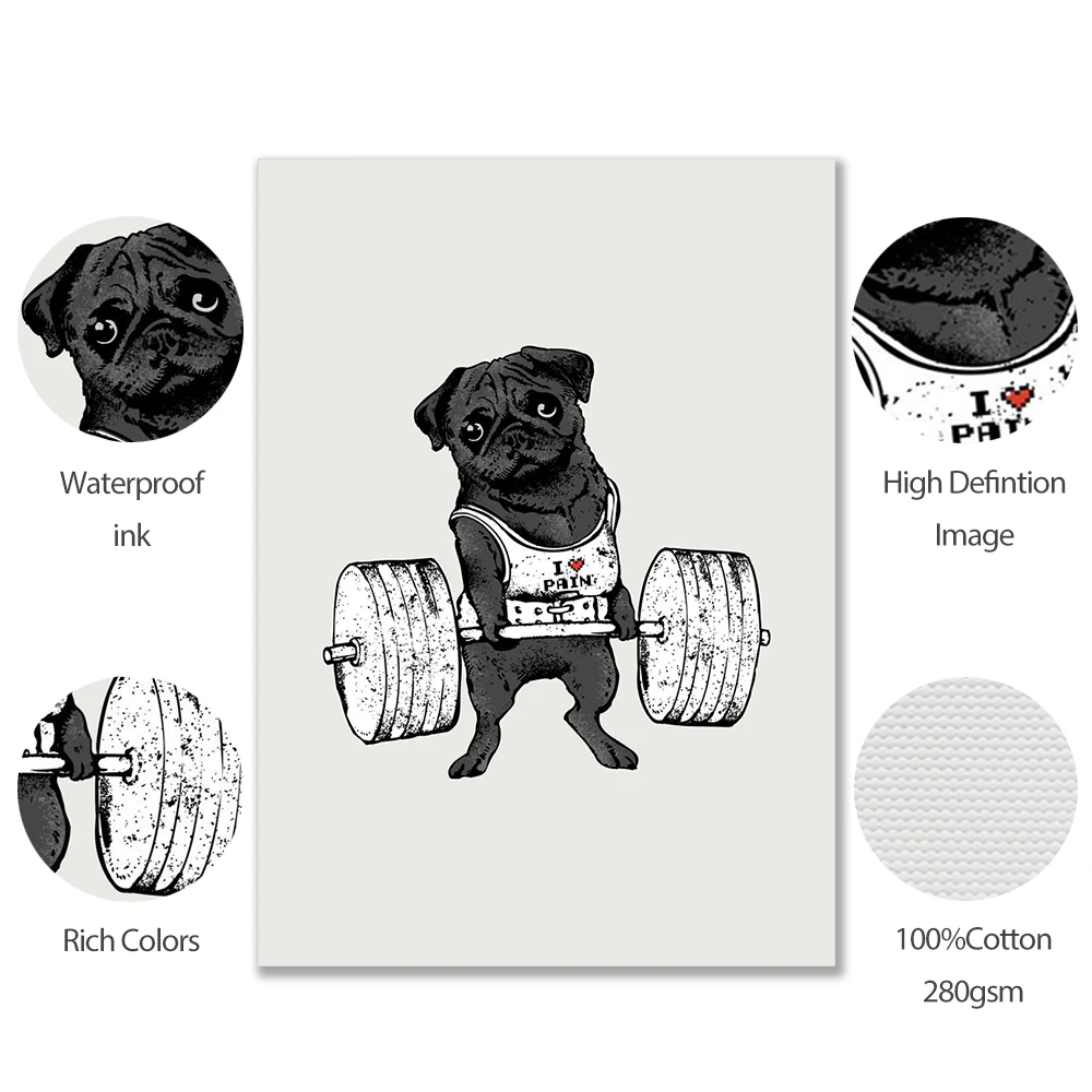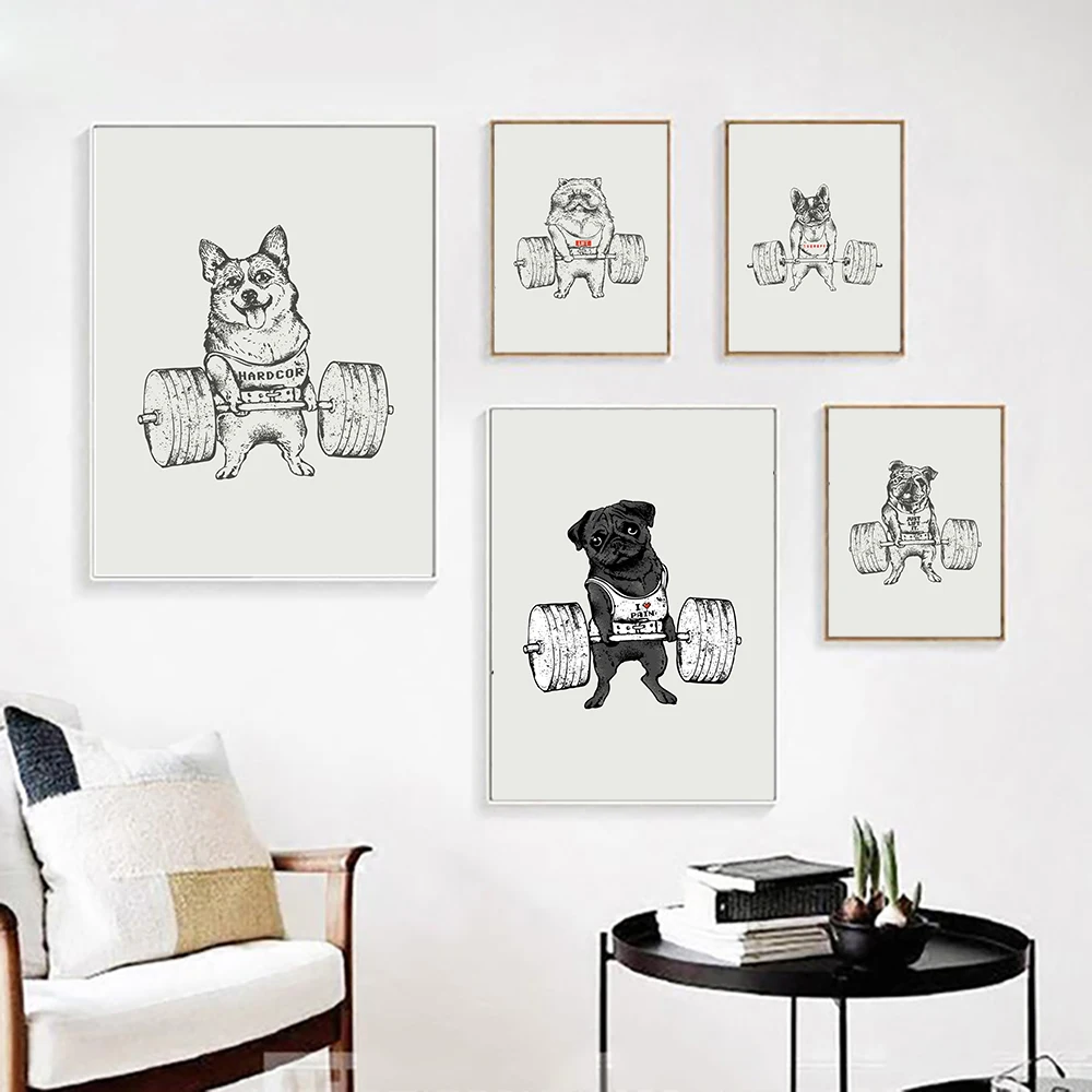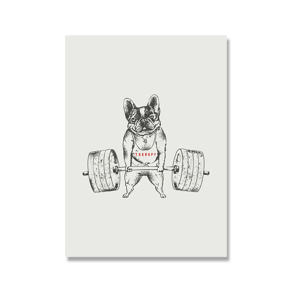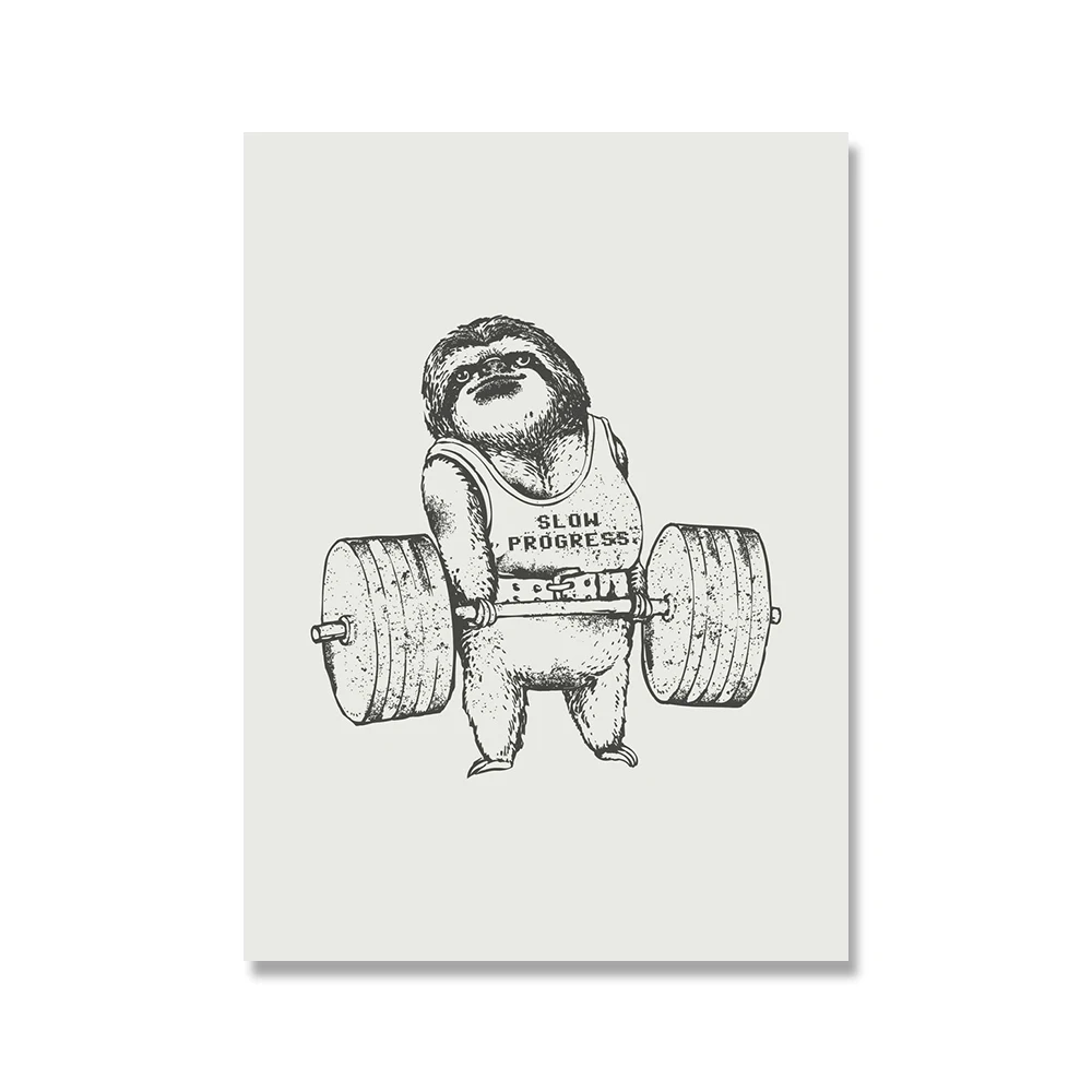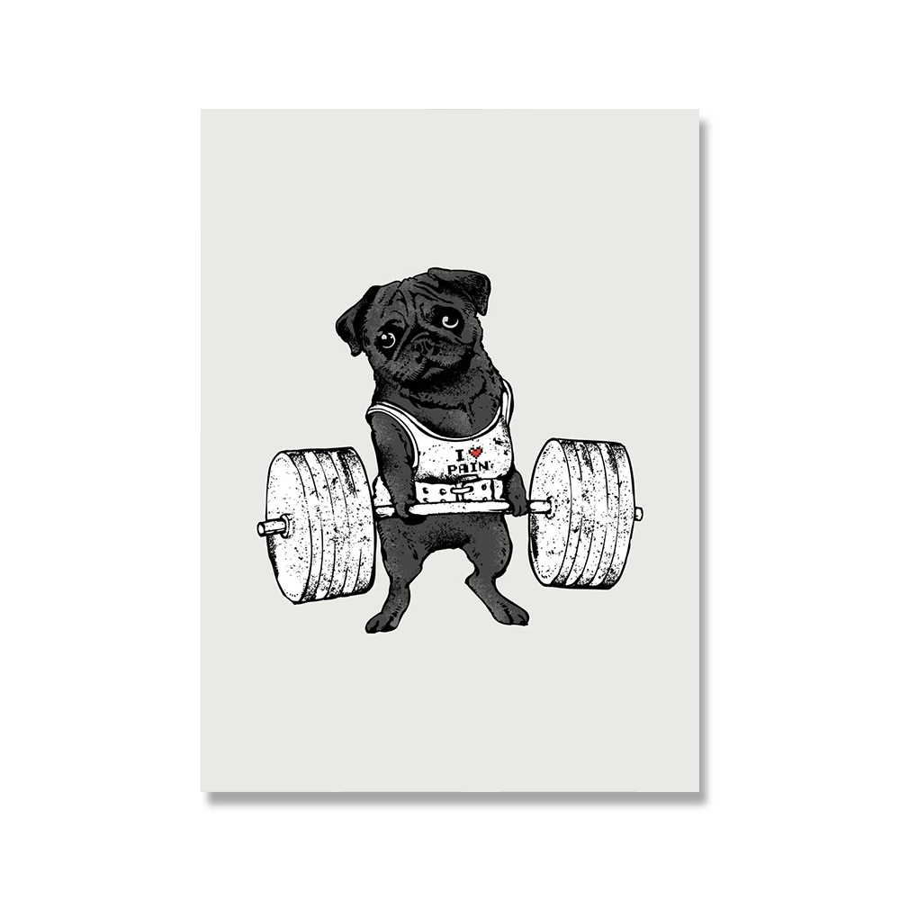 Черно-белая животная поднимающая Спортивная Картина на холсте Мопс бульдог Ленивец кошка для упражнений постер для спортзала настенная печать картины декор комнаты