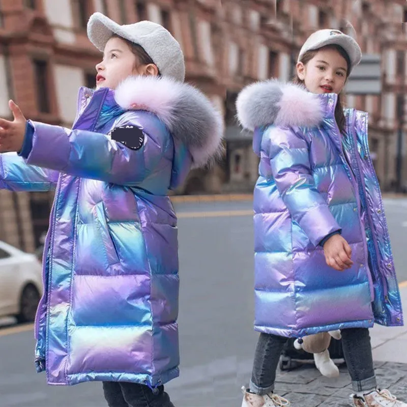 Зимняя новая блестящая пуховая куртка для девочек, модная детская т...