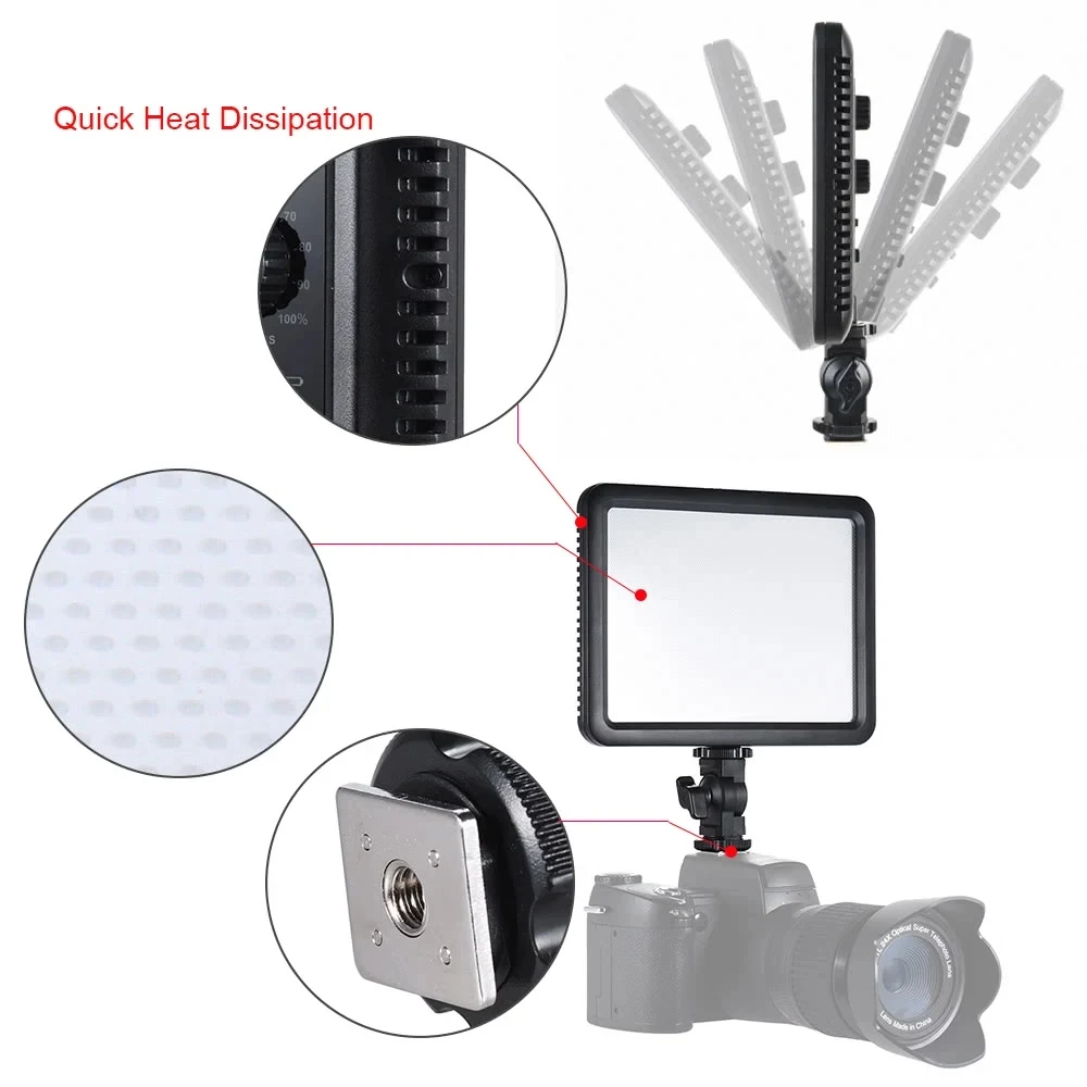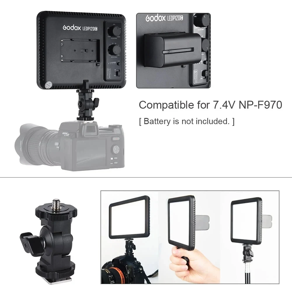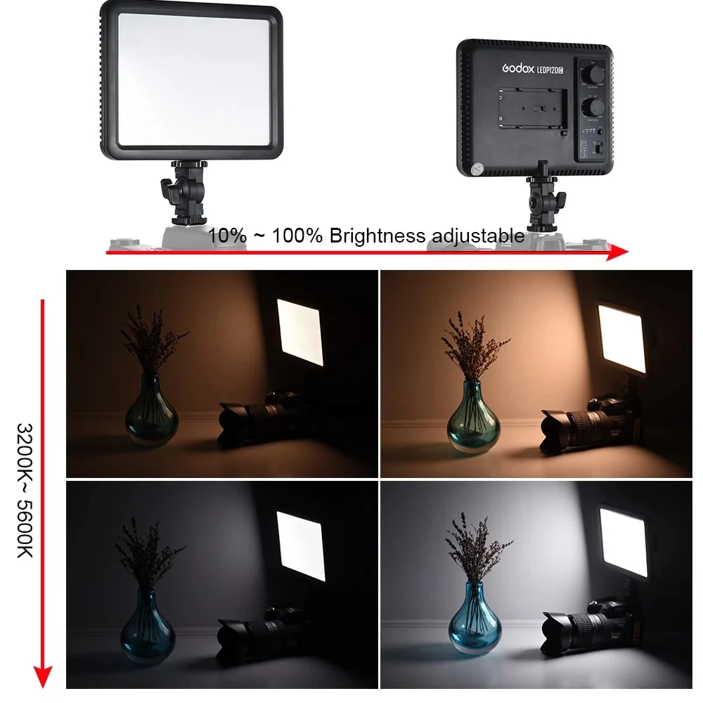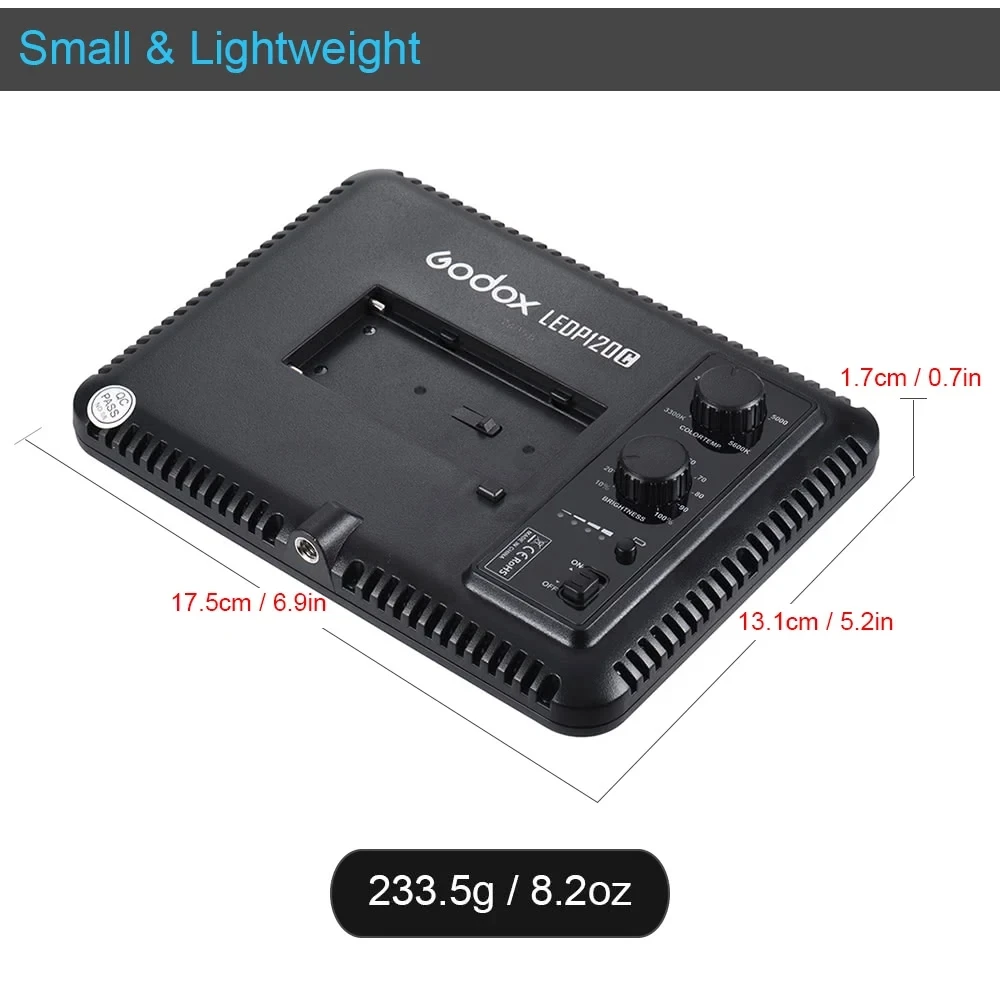 Godox светодиодный P120C светодиодный видео светильник-это идеальный помощник для вашей фотографии или видео съемки. Ультра-тонкий дизайн, 12 Вт Высокая мощность даже мягкий светильник, 3200 ~ 5600K Бесступенчатая Регулируемая Цветовая температура. 10% ~ 100% Бесступенчатая Регулируемая яркость, CRI>95. ... Что делает его легким для вас, чтобы найти лучшее состояние освещения. Крепление для горячего башмака поддерживает ручной, на камере/на подставке светильник (1/4 "винтовое крепление).